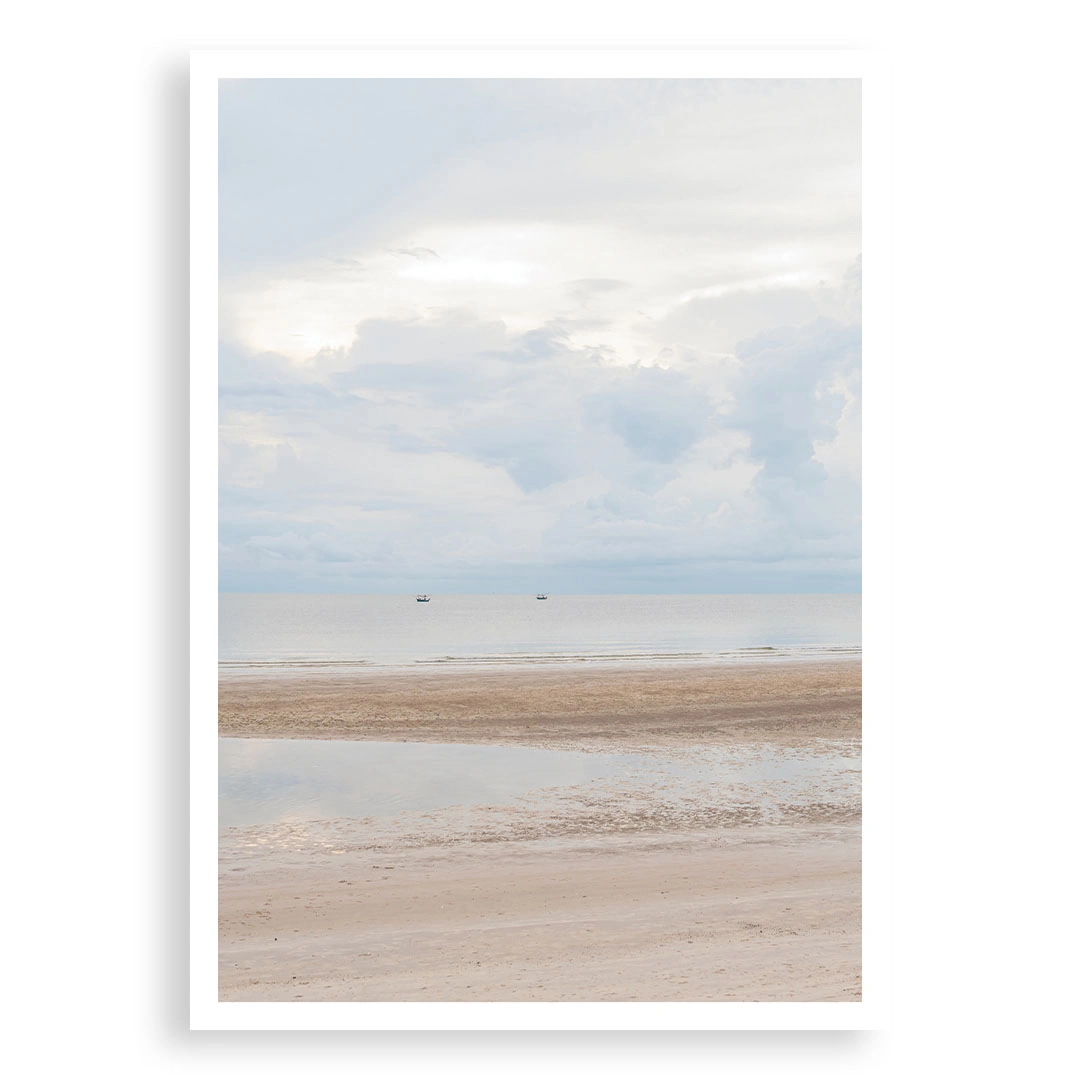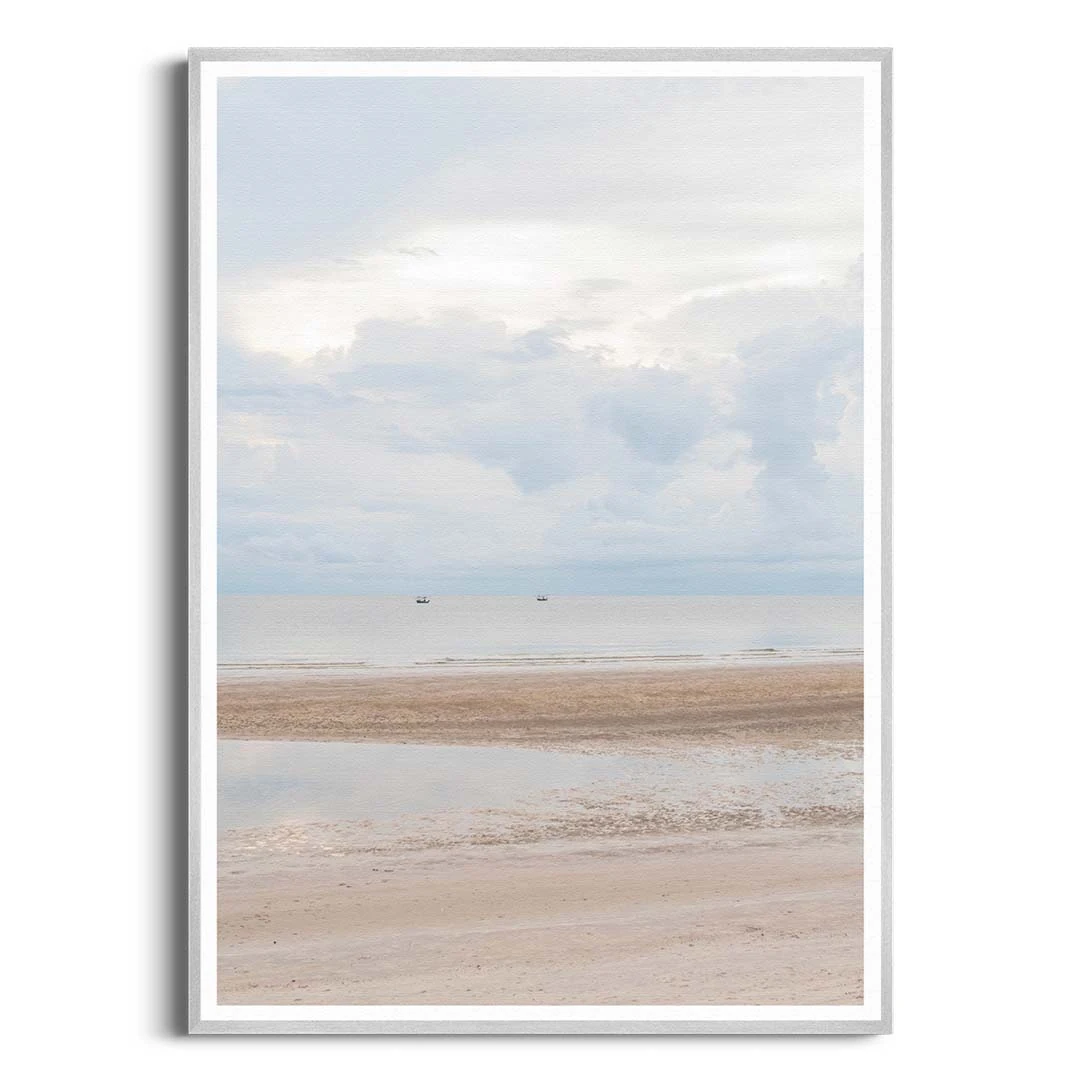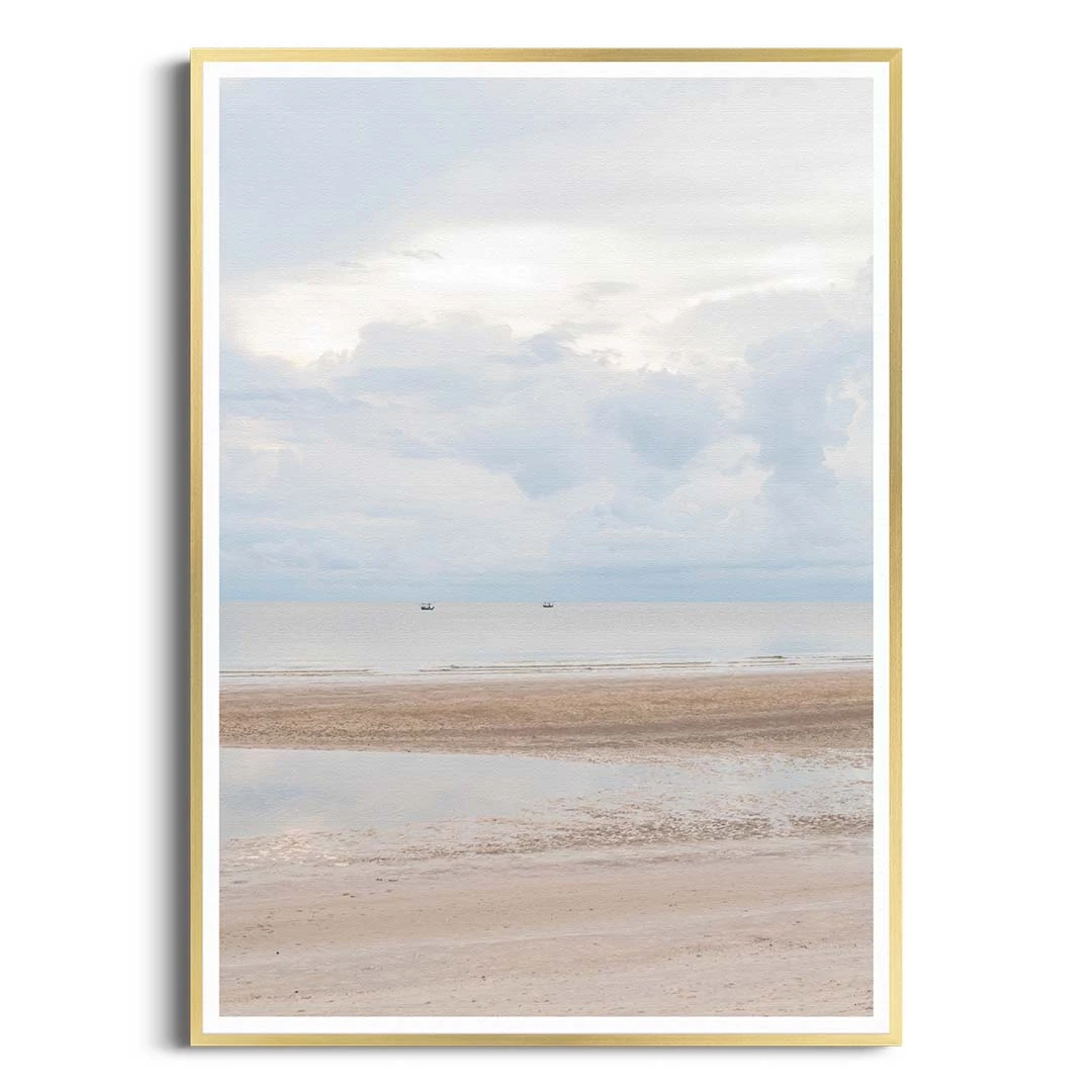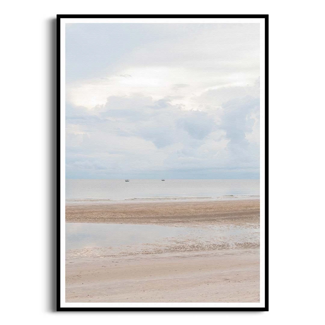 Plakat - Pejzaż Plaży z Morzem, Piaskiem i Chmurami II, Minimalistyczny Krajobraz do Salonu lub Sypialni
