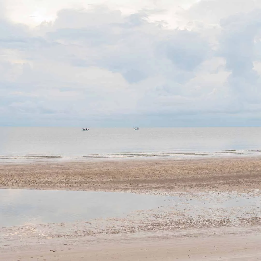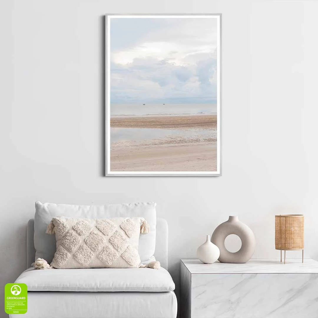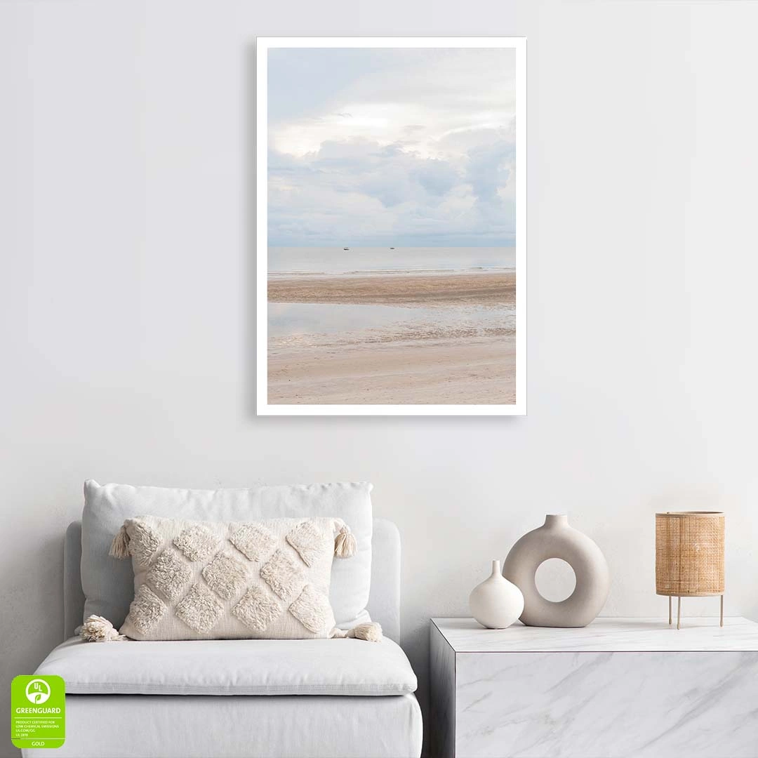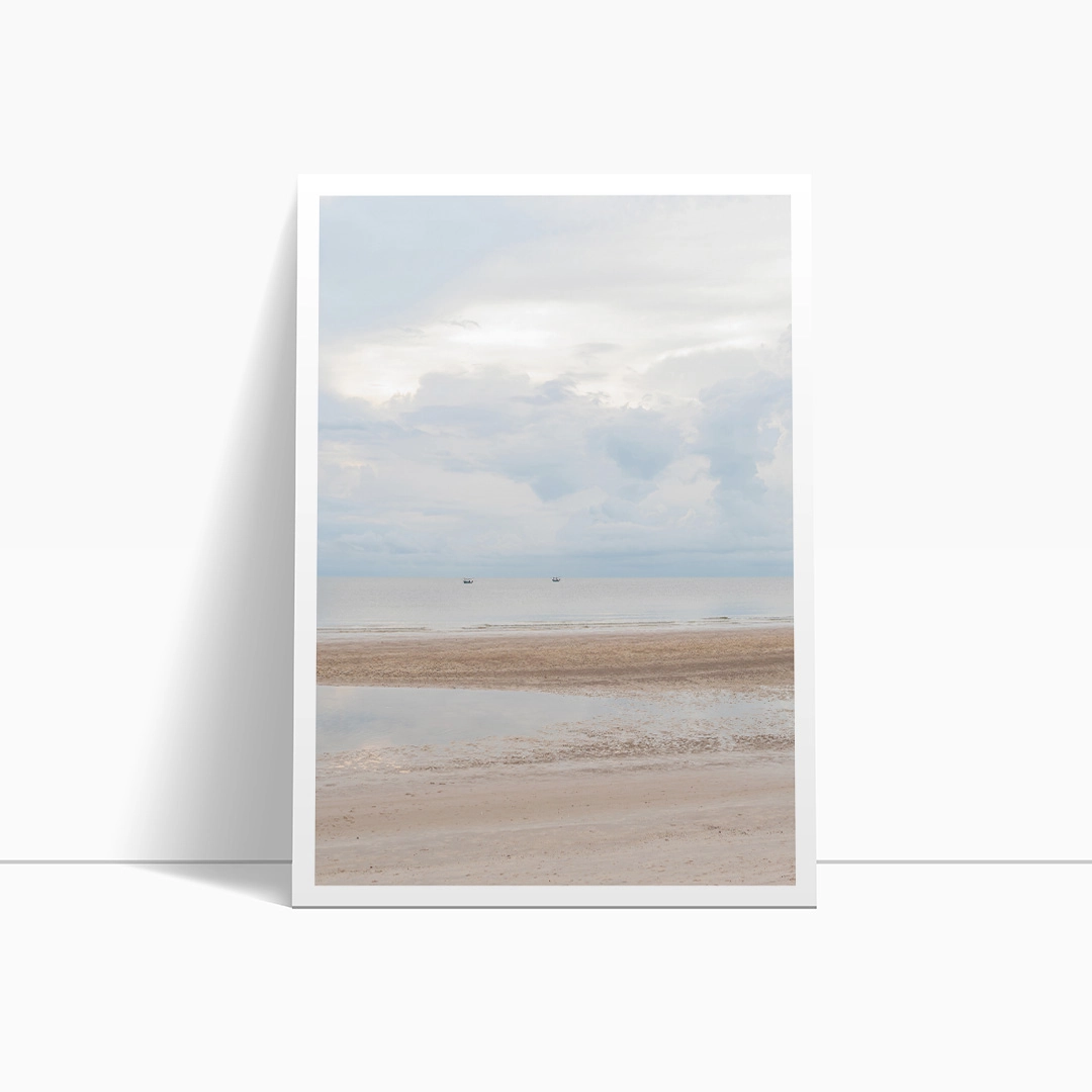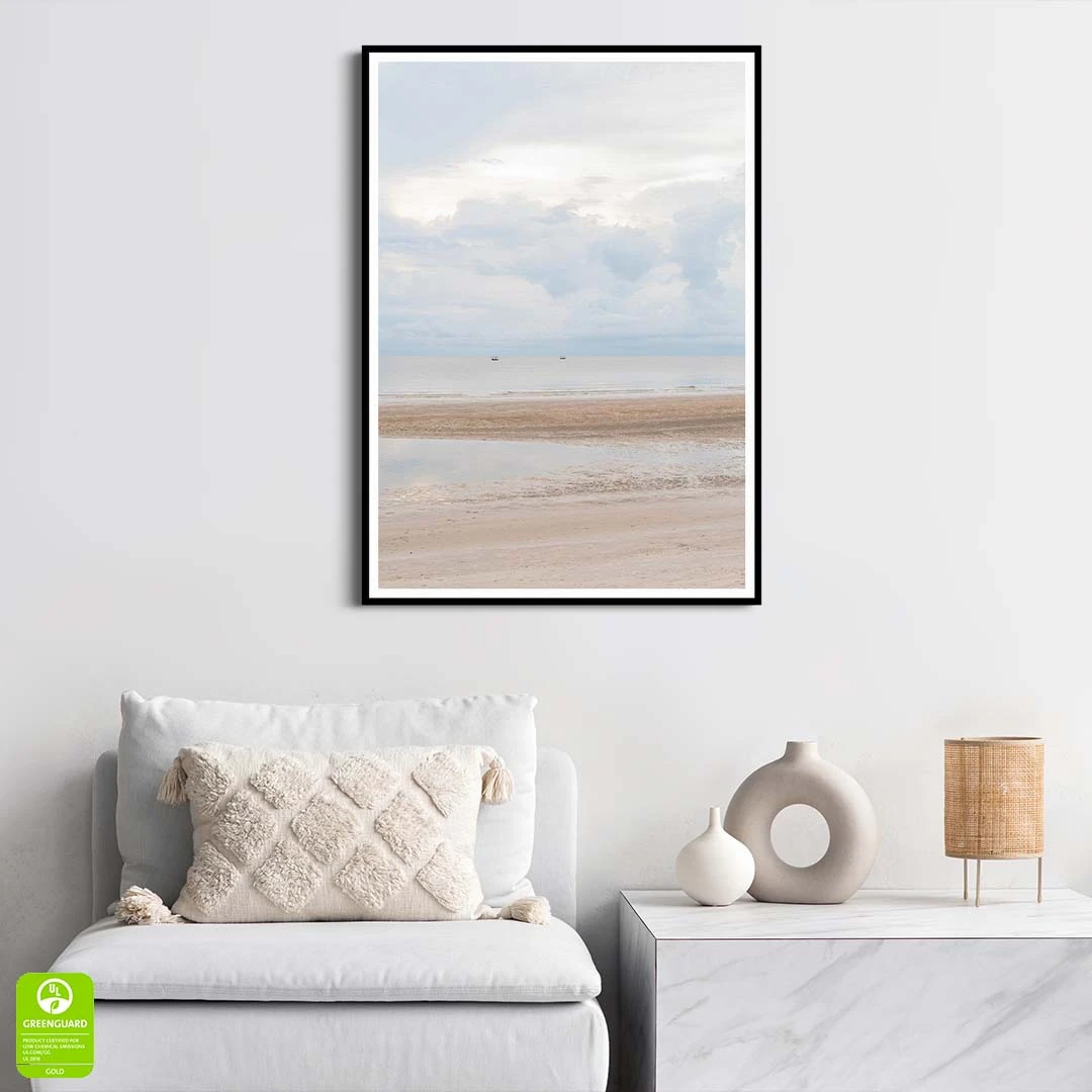 Plakat - Pejzaż Plaży z Morzem, Piaskiem i Chmurami II, Minimalistyczny Krajobraz do Salonu lub Sypialni