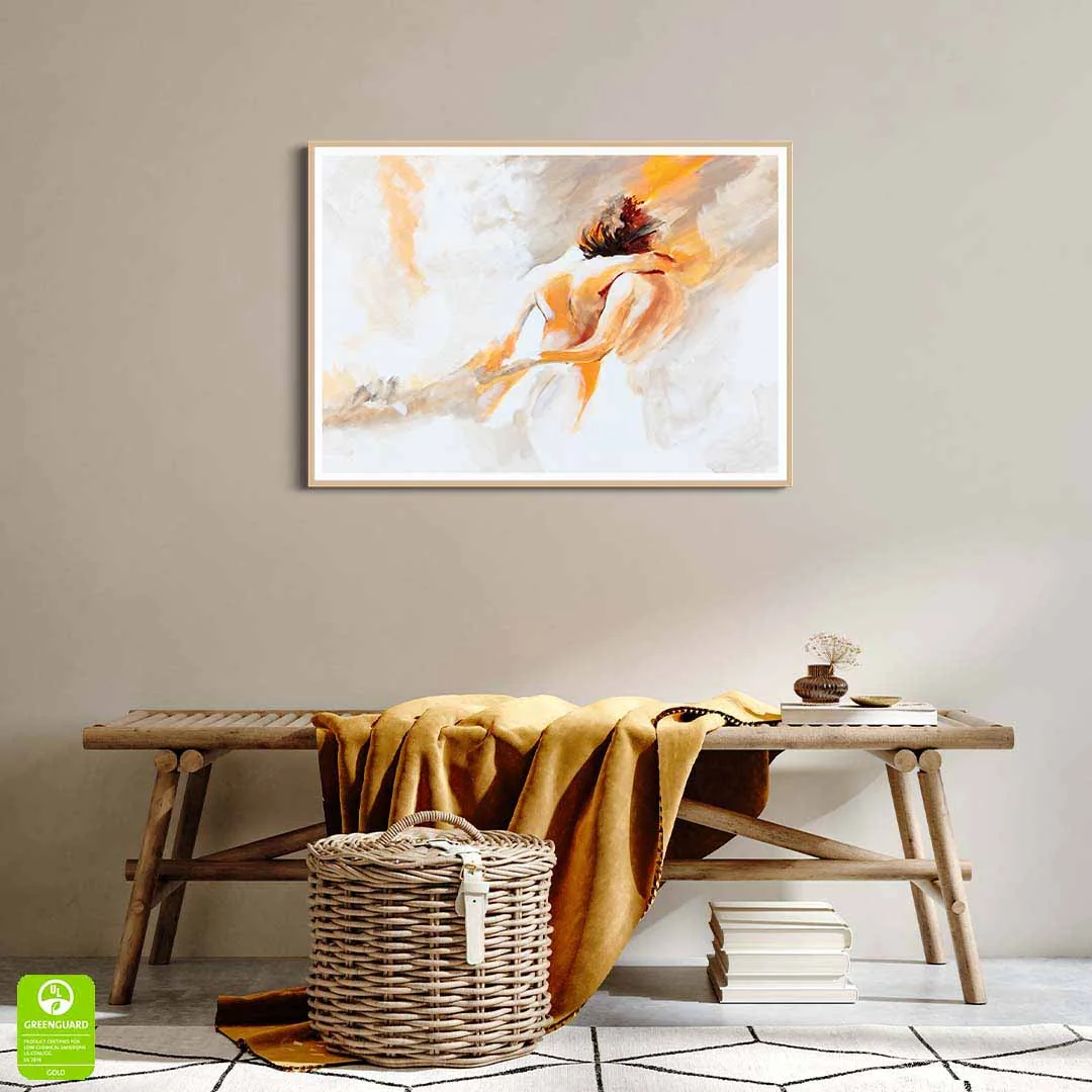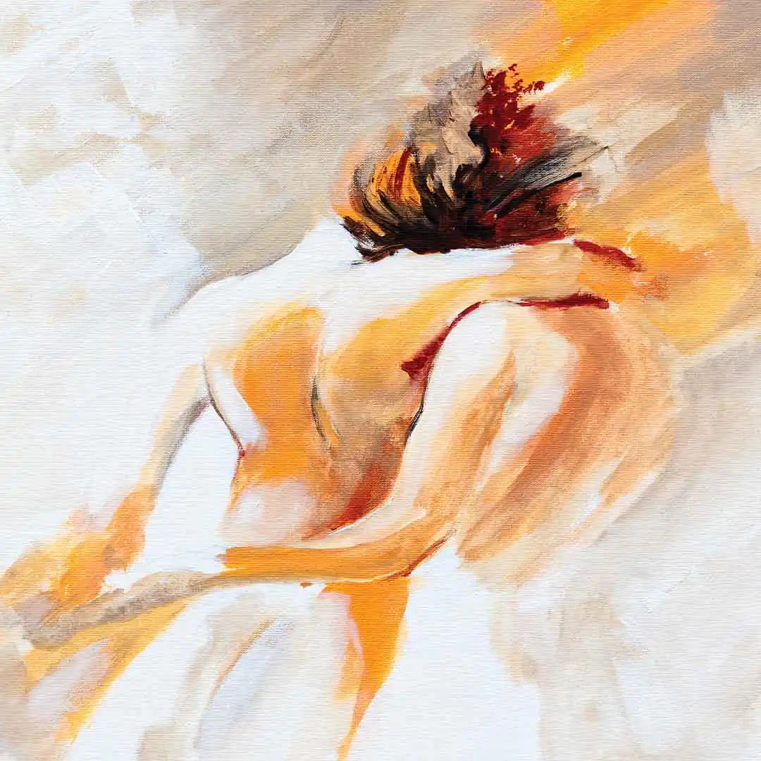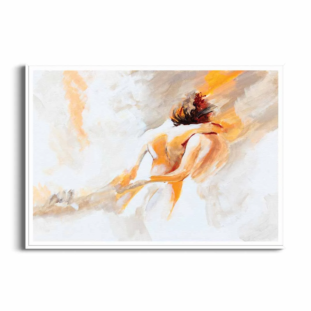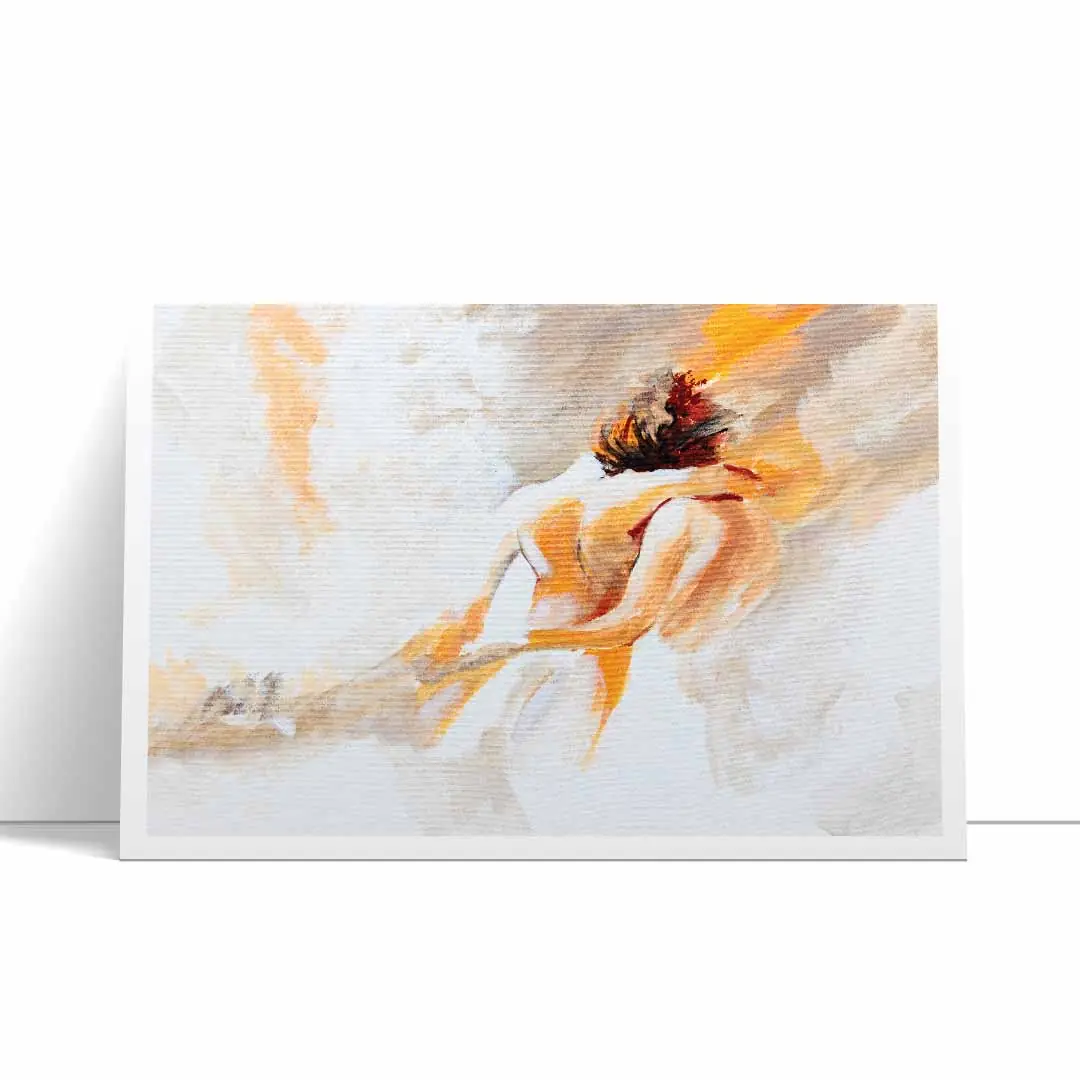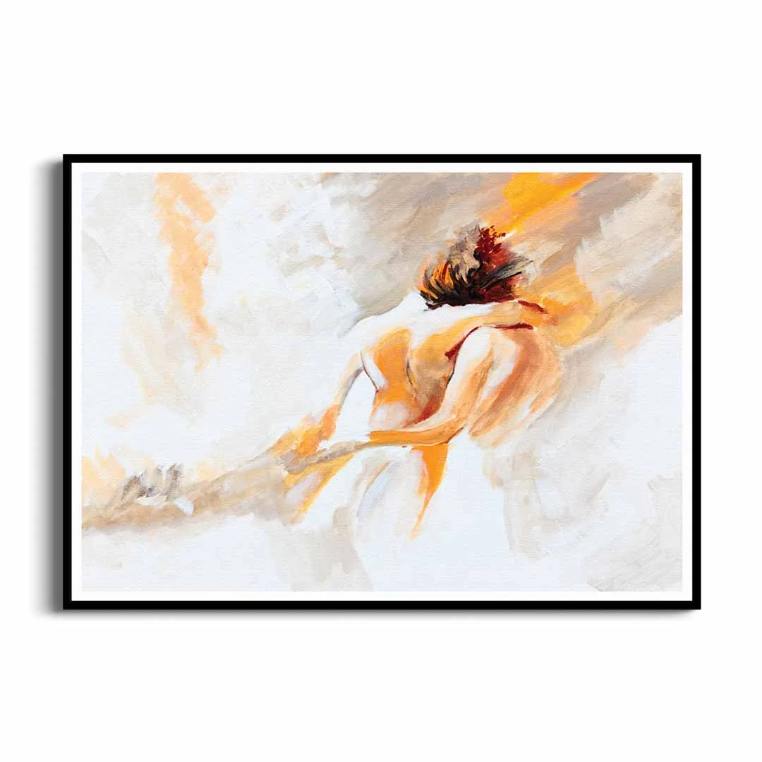 Plakat - W objęciach bliskości - Kochankowie to doskonała propozycja dla osób ceniących piękne i zmysłowe wzory. Plakat utrzymany jest w delikatnych, jasnych barwach z odrobiną mocniejszych dodatków kolorystycznych. Możemy tutaj dostrzec kolor żółty, pomarańczowy, beżowy, brązowy, kremowy, a nawet odrobinę ognistego rudego koloru. Wzór nie jest zupełnie gładki, posiada delikatną "fakturę". Plakat doskonale prezentuje się w nowoczesnych ramkach i będzie pasować do wielu stylów wykończenia wnętrz od skandynawskiego po nowoczesny. Polecamy go szczególnie jako dekoracja sypialni.