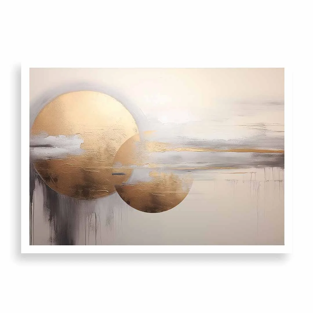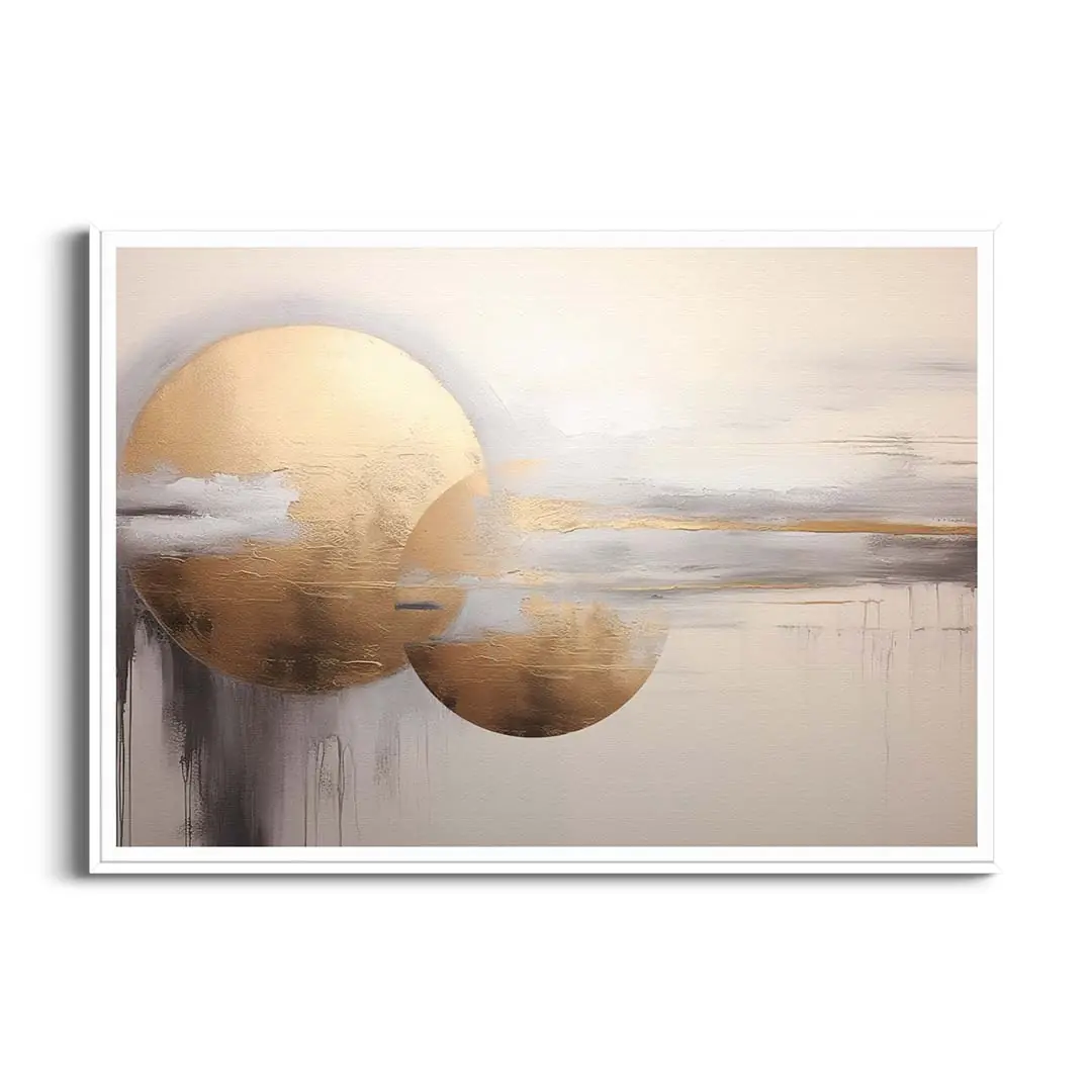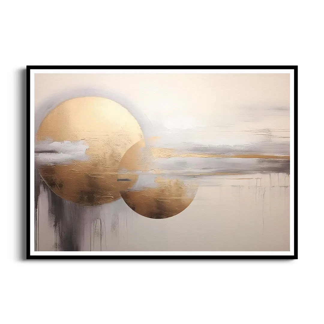 - techniką druku - proces drukowania wykorzystuje inne metody tworzenia kolorów (tzw. "przestrzeń barw") niż te, które stosowane są na ekranach komputera; kolory drukowane mogą wyglądać również nieco inaczej na różnych materiałach (np. canvasie, flizelinie, papierze czy szkle itp.) i przy użyciu różnych tuszy, w naszym przypadku tuszy do druku UV; złote elementy nie są wybiórczo metalizowane - efekt uzyskany jest poprzez wydruk tekstury w kolorze złota;