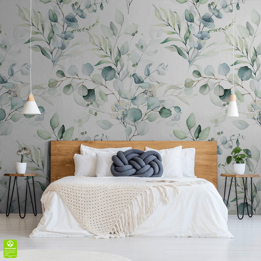 Tapeta Akwarelowe Liście i Gałązki – Delikatny Motyw Roślinny na Wymiar do Salonu, Sypialni, Kuchni – Styl Boho, Skandynawski