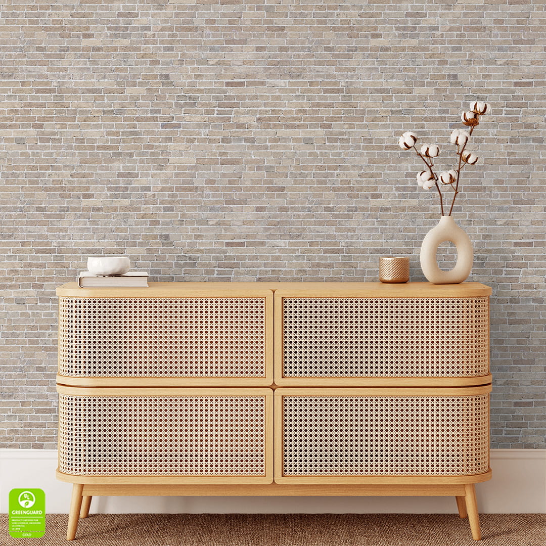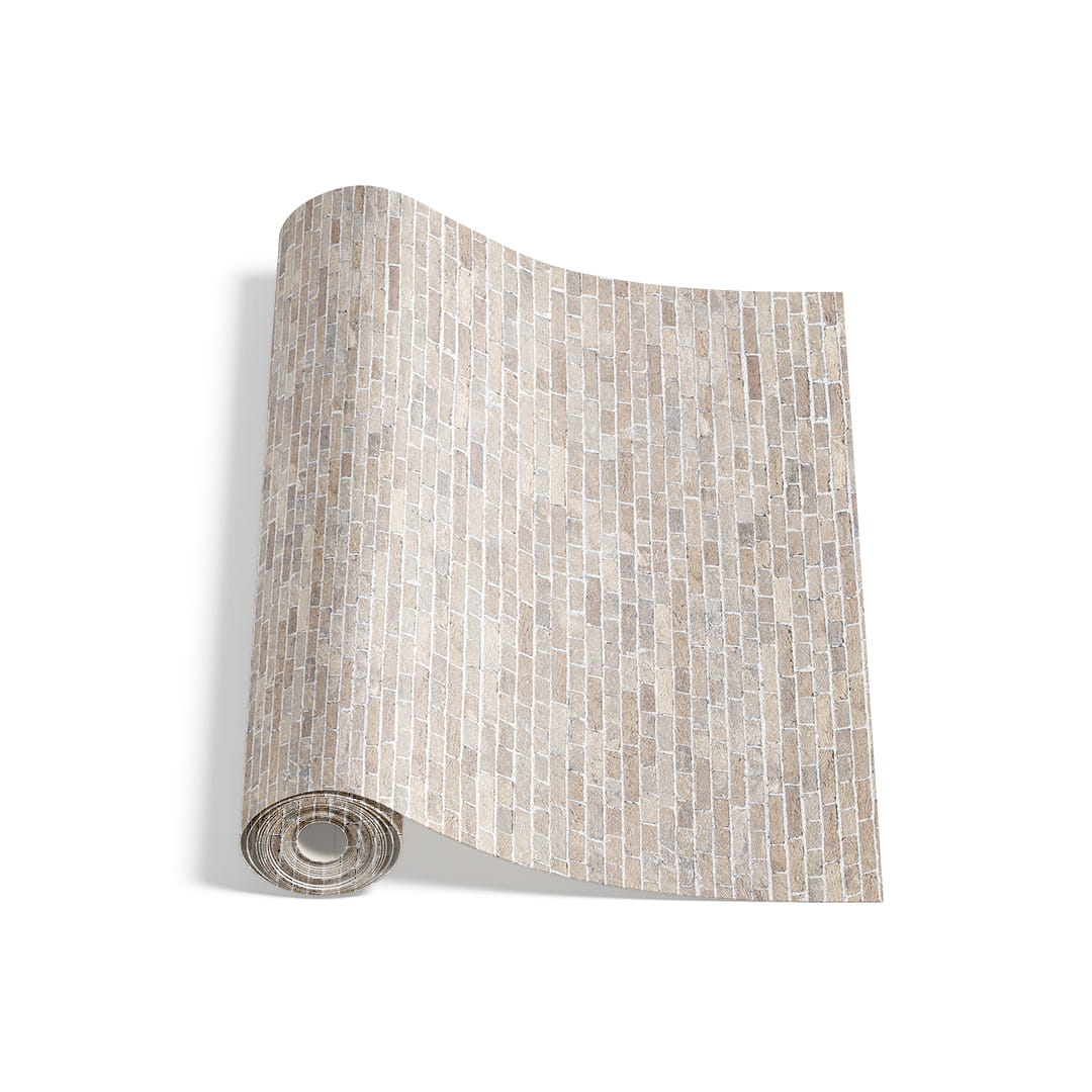 Tapeta Drobna Cegła Beżowa na Wymiar - Subtelna Imitacja Kamienia do Sypialni, Jadalni, Przedpokoju, Styl Nowoczesny, Boho