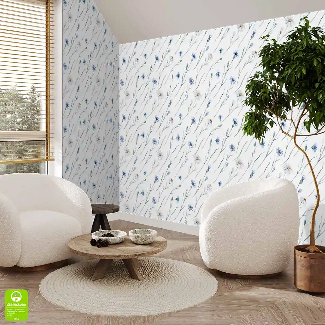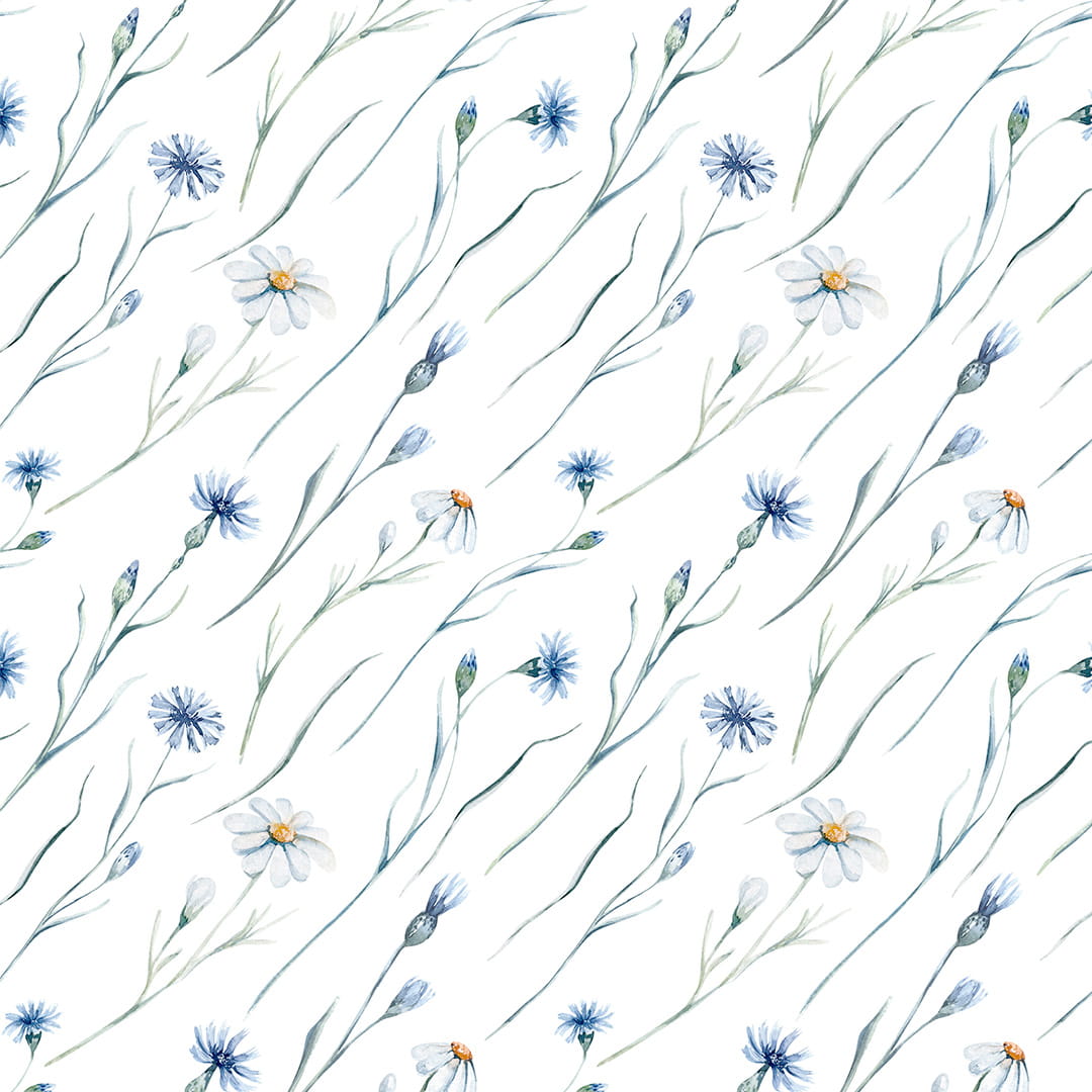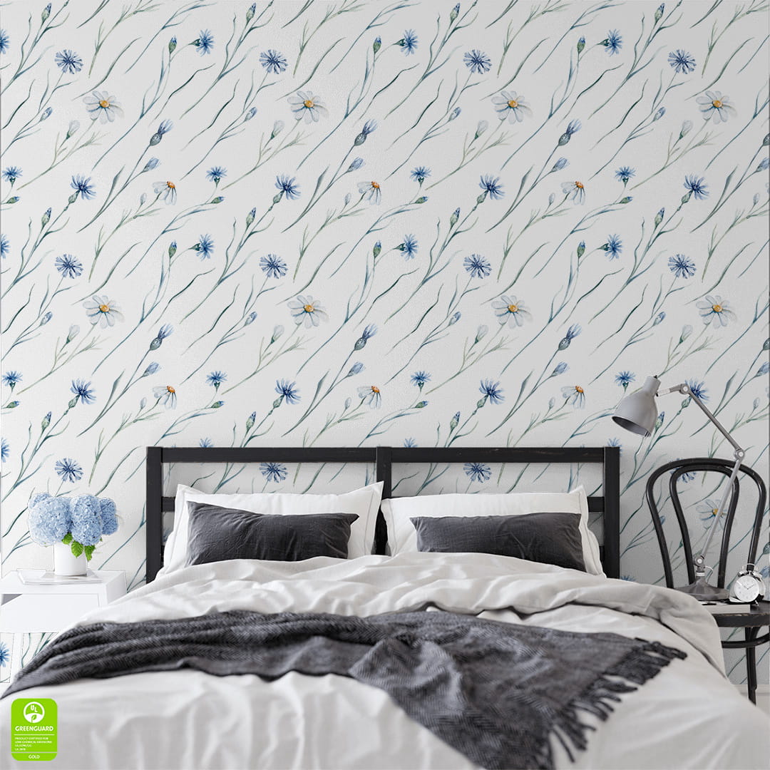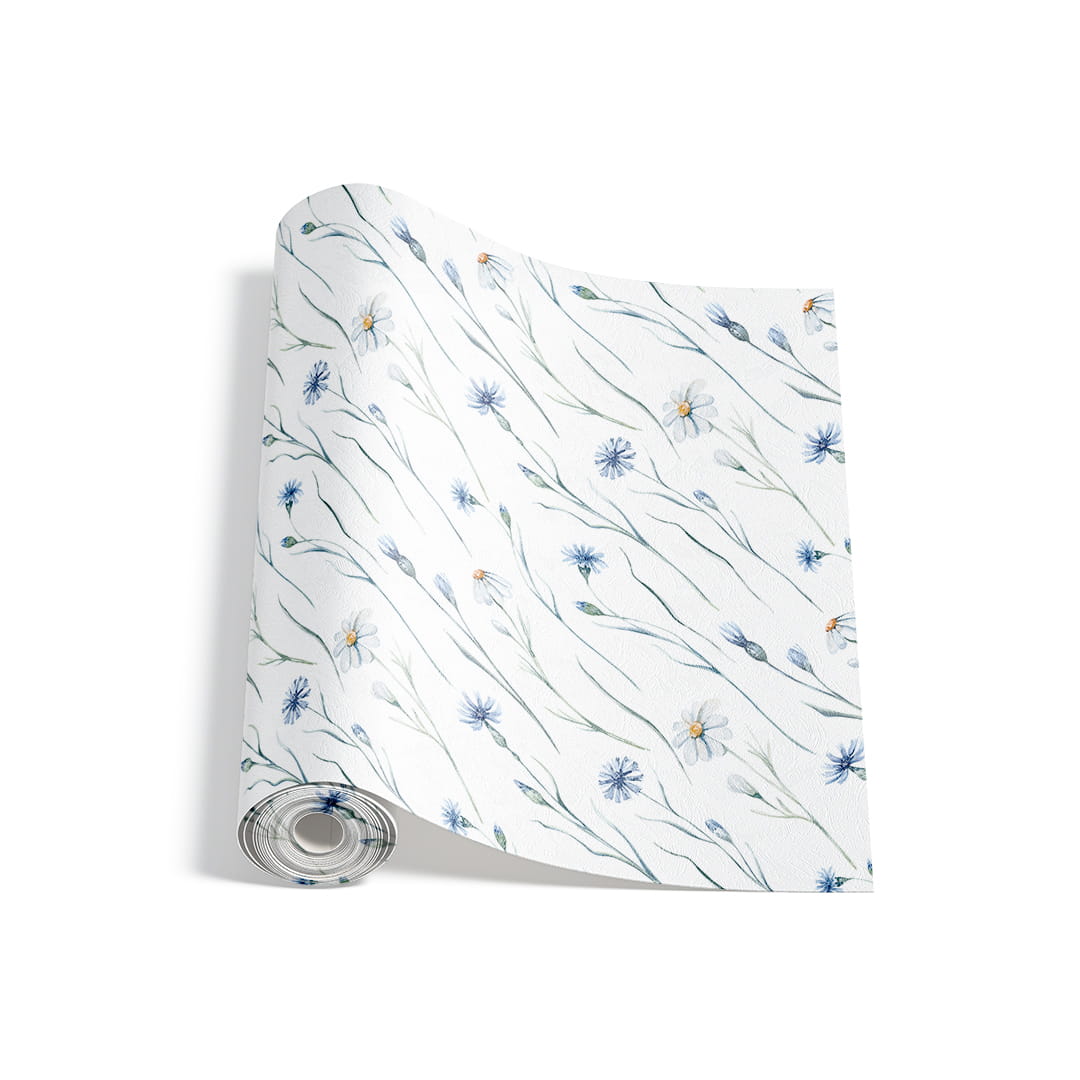 Designerska tapeta na ścianę "Akwarelowe chabrowe kwiaty na białym tle"