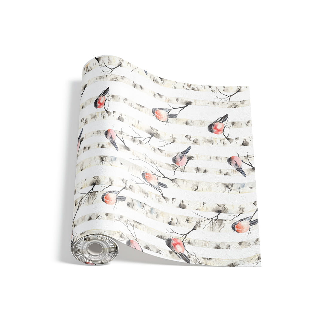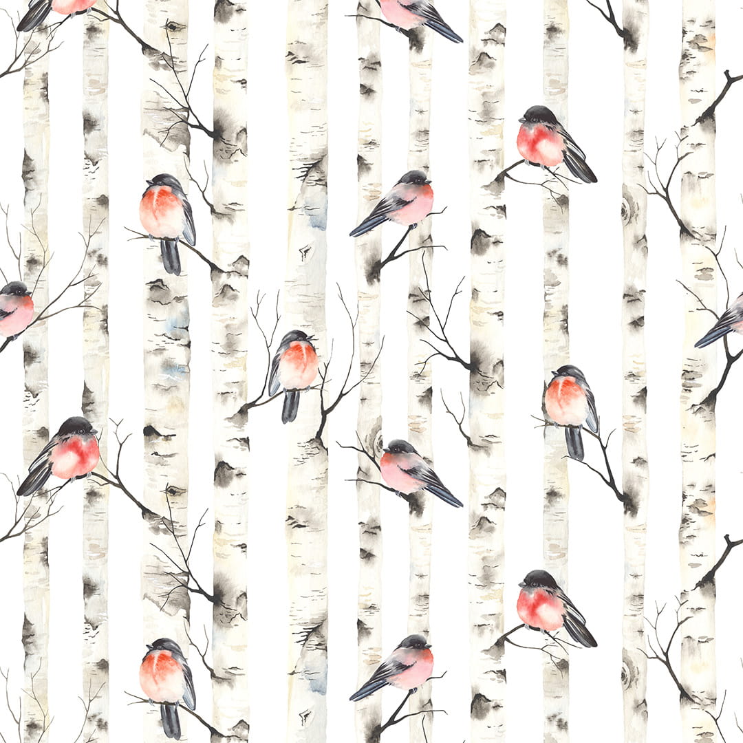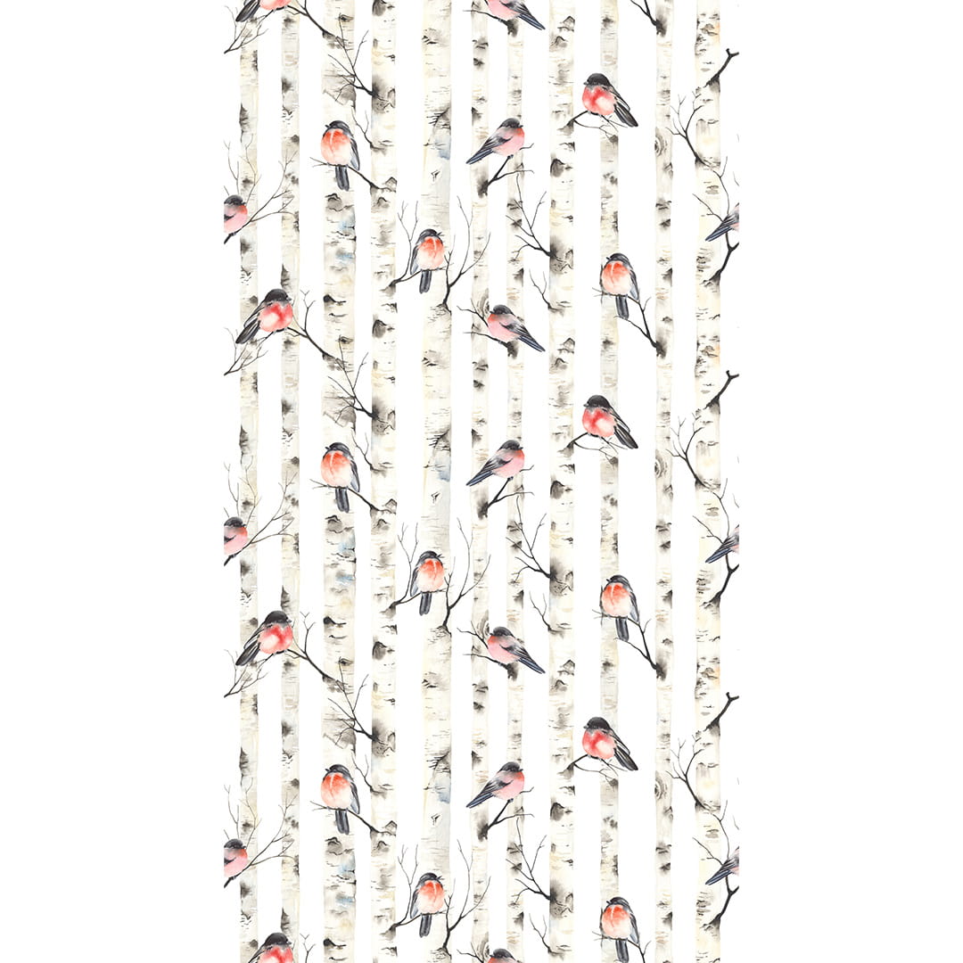 Designerska tapeta na ścianę "Akwarelowe gile na konarach brzozy"