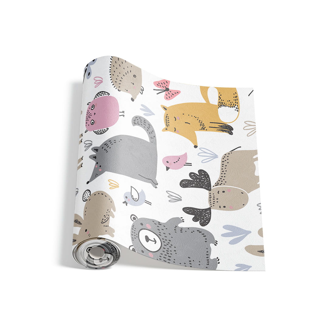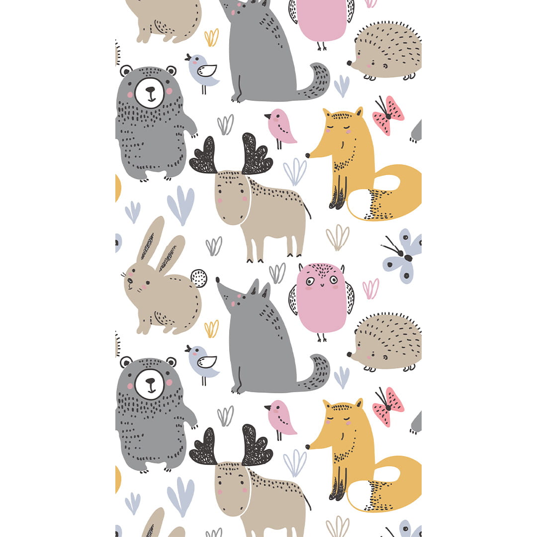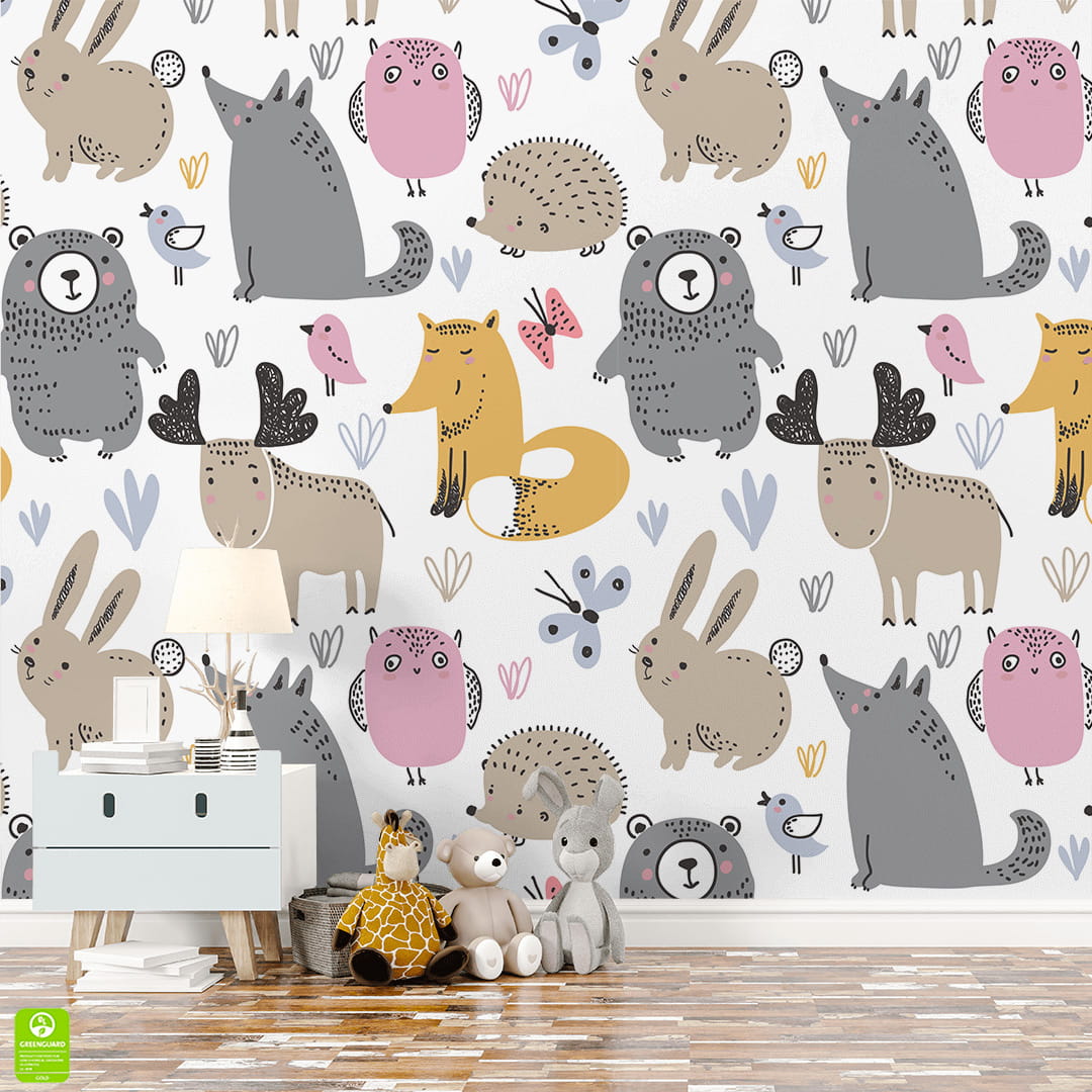 Tapeta na wymiar: Leśne Zwierzęta do Pokoju Dziecięcego – Lis, Miś i Zając – Styl Skandynawski