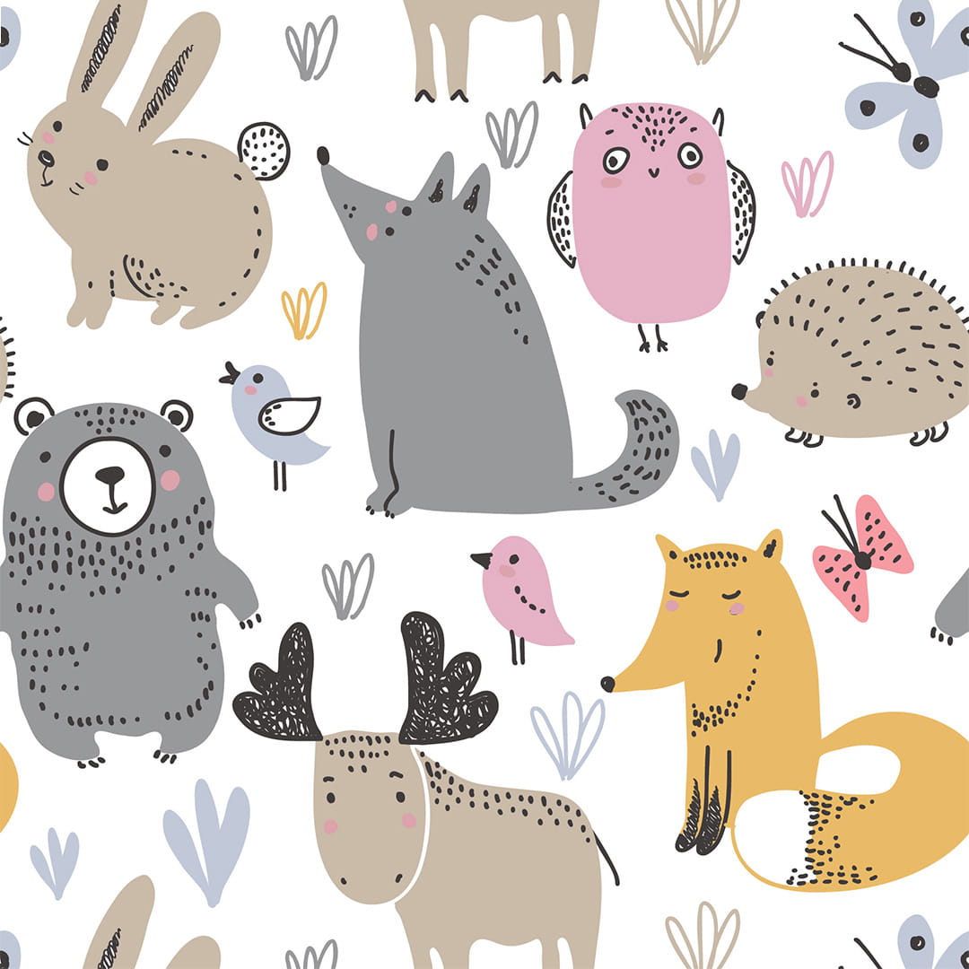 Designerska tapeta na ścianę "Leśne zwierzątka dla dzieci na białym tle"
