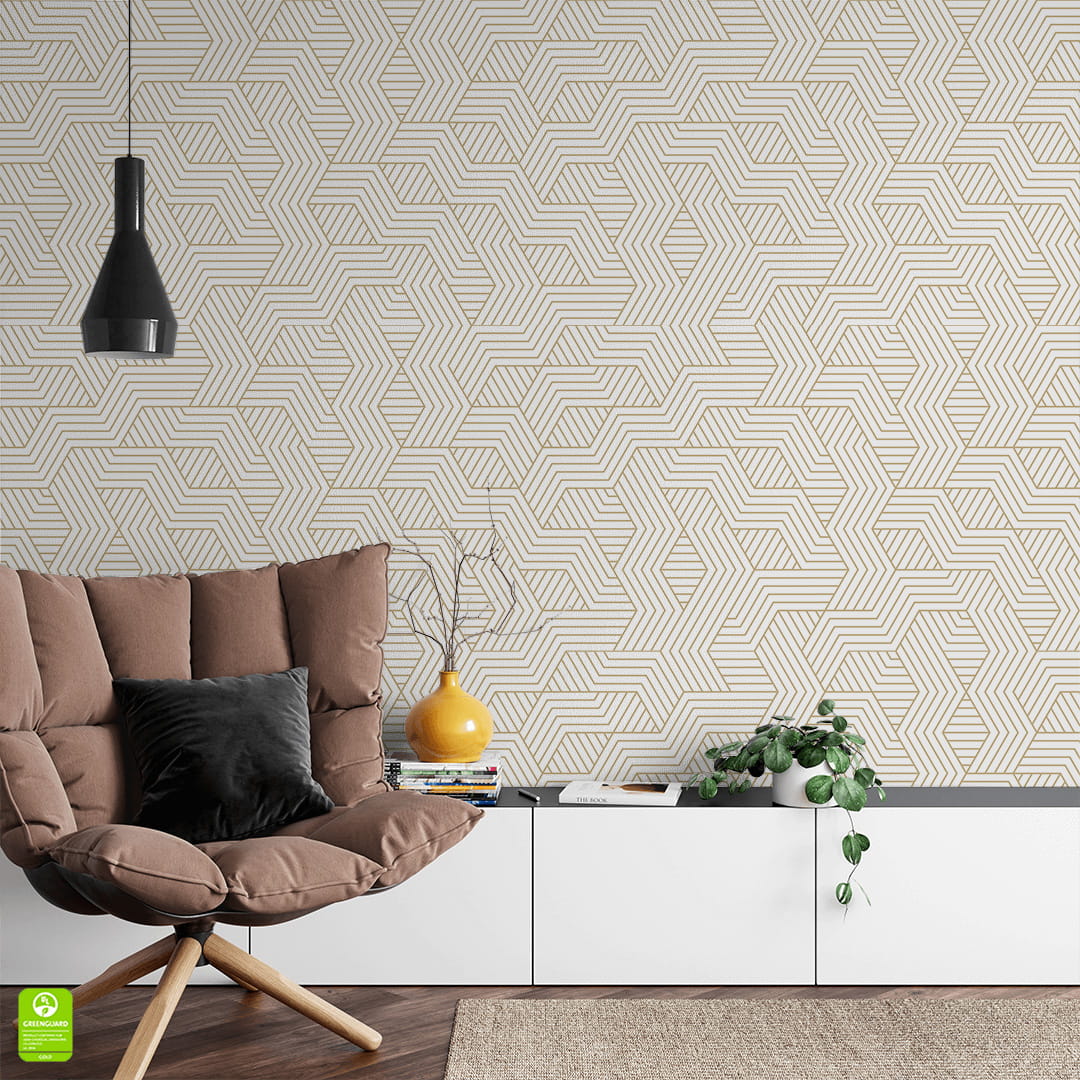 Tapeta na wymiar: Linie Geometryczne w Kolorze Złota – Białe Tło, Styl Glamour i Nowoczesny do Salonu, Sypialni