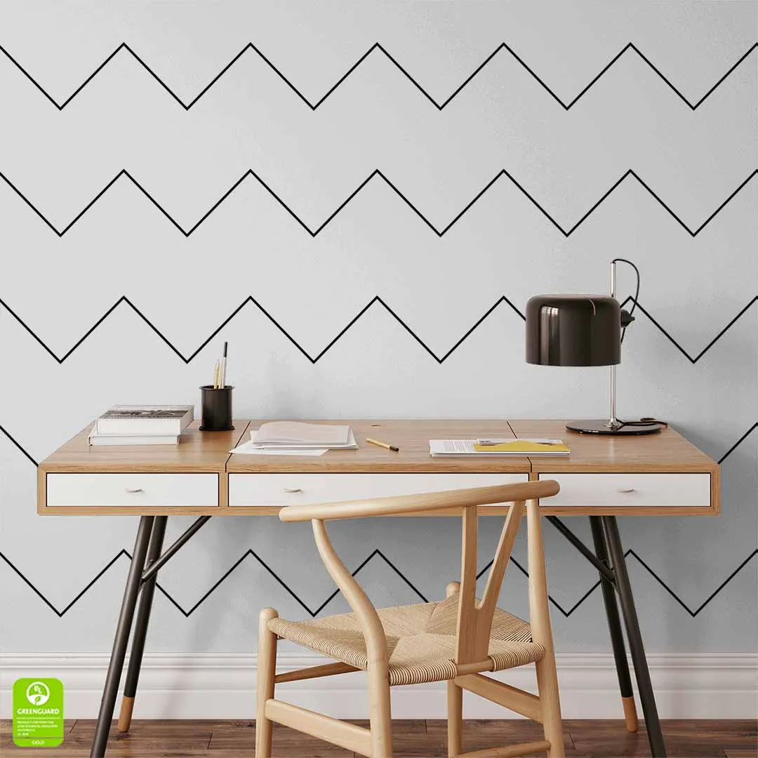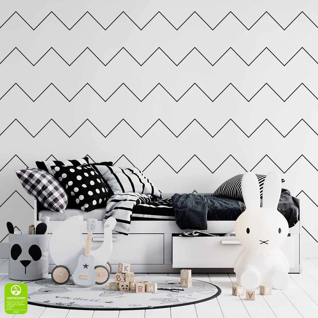 Tapeta na wymiar - Zygzak delikatny to propozycja dla miłośników prostych, geometrycznych wzorów i czarno-białej kolorystyki. Proste, łamane, czarne linie na białym tle świetnie wkomponują się w styl skandynawski, nowoczesny czy industrialny. Wzór jest wyjątkowo delikatny, wręcz subtelny, jak na wzór tapetowy. Będzie stanowił świetne tło dla mocniejszych, kolorystycznych akcentów typu poduszka czy wyrazista w kolorze doniczka na kwiaty. Wzór doskonale sprawdzi się w pokoju dziecięcym, młodzieżowym, czy gabinecie, właśnie ze względu na oszczędność formy. Jeśli podobają Ci się wzory w podobnym stylu to w naszej ofercie znajdziesz ich kilka - kolekcja "Zygzak" . Możesz wybrać spośród kilku wzorów: grubość czarnej linii, wysokość jej załamania czy gęstość wzoru. Pamiętaj, iż wzory tapetowe pozwalają na dopasowanie wielkości wzoru do Twoich preferencji, linia może być bardzo drobna lub bardzo gruba, dzięki dużemu powiększeniu.