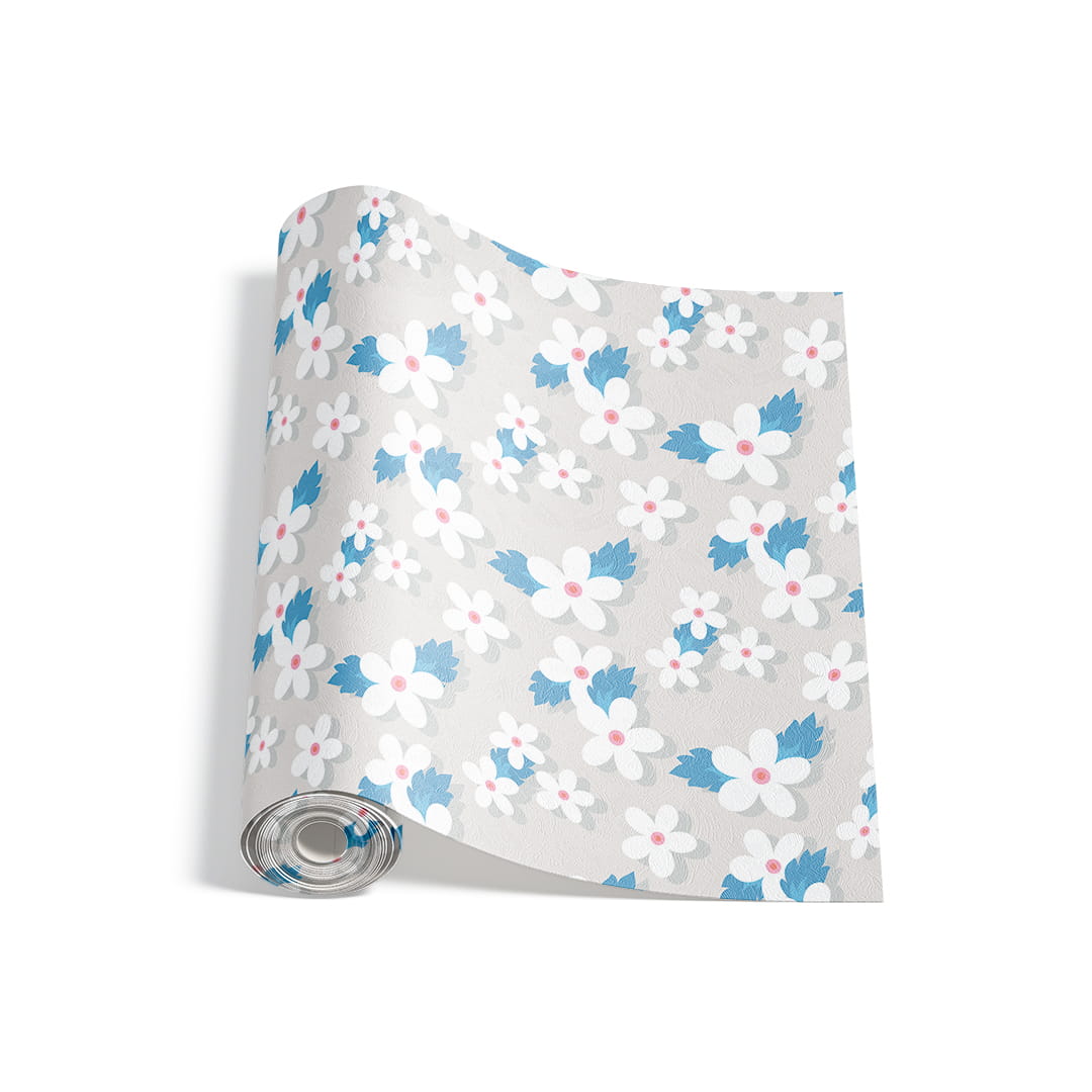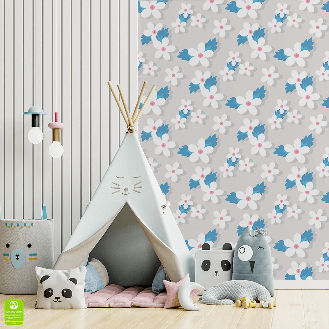 Tapeta na wymiar do Pokoju Dziecięcego – Małe Białe Kwiatki na Szarym Tle – Styl Skandynawski