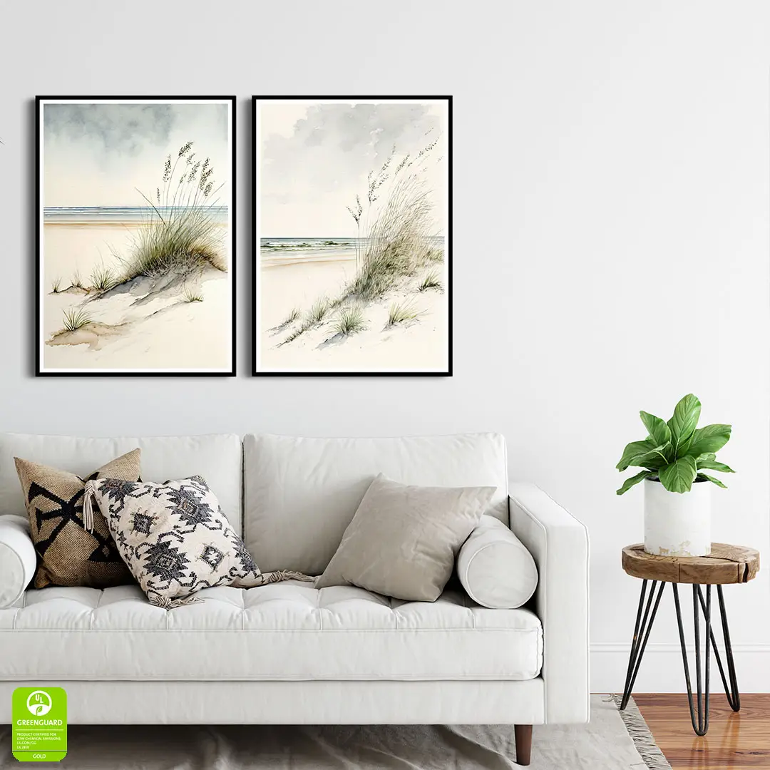 Wprowadź do swojego domu atmosferę łagodności i harmonii dzięki Zestawowi plakatów - Nadmorskie Wydmy. Ten wyjątkowy dyptyk to coś więcej niż dekoracja – to zaproszenie do świata ciszy, gdzie kojący szum morza spotyka się z subtelnym, nowoczesnym designem.
