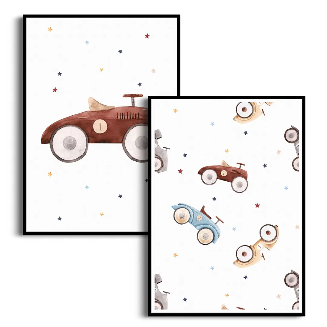 Wprowadź do pokoju swojego dziecka atmosferę łagodności i harmonii dzięki Zestawowi plakatów - Autka retro. Ten wyjątkowy dyptyk to coś więcej niż dekoracja – to zaproszenie do świata dziecięcych marzeń, gdzie pasja do przygód spotyka się z kojącym, nowoczesnym designem.