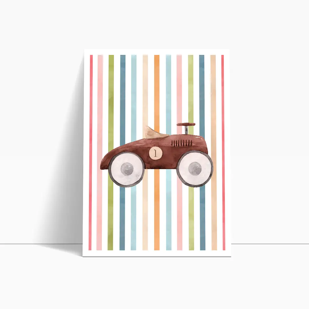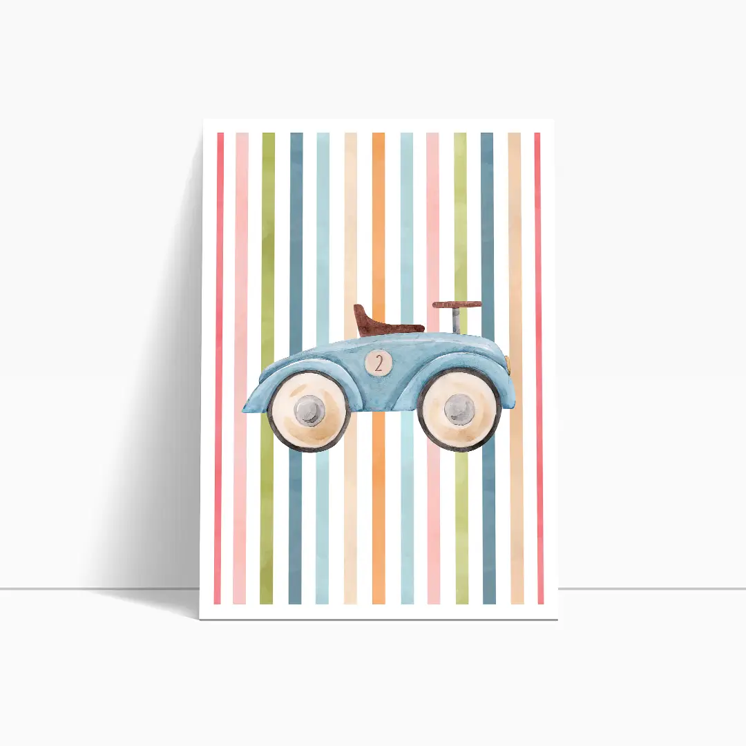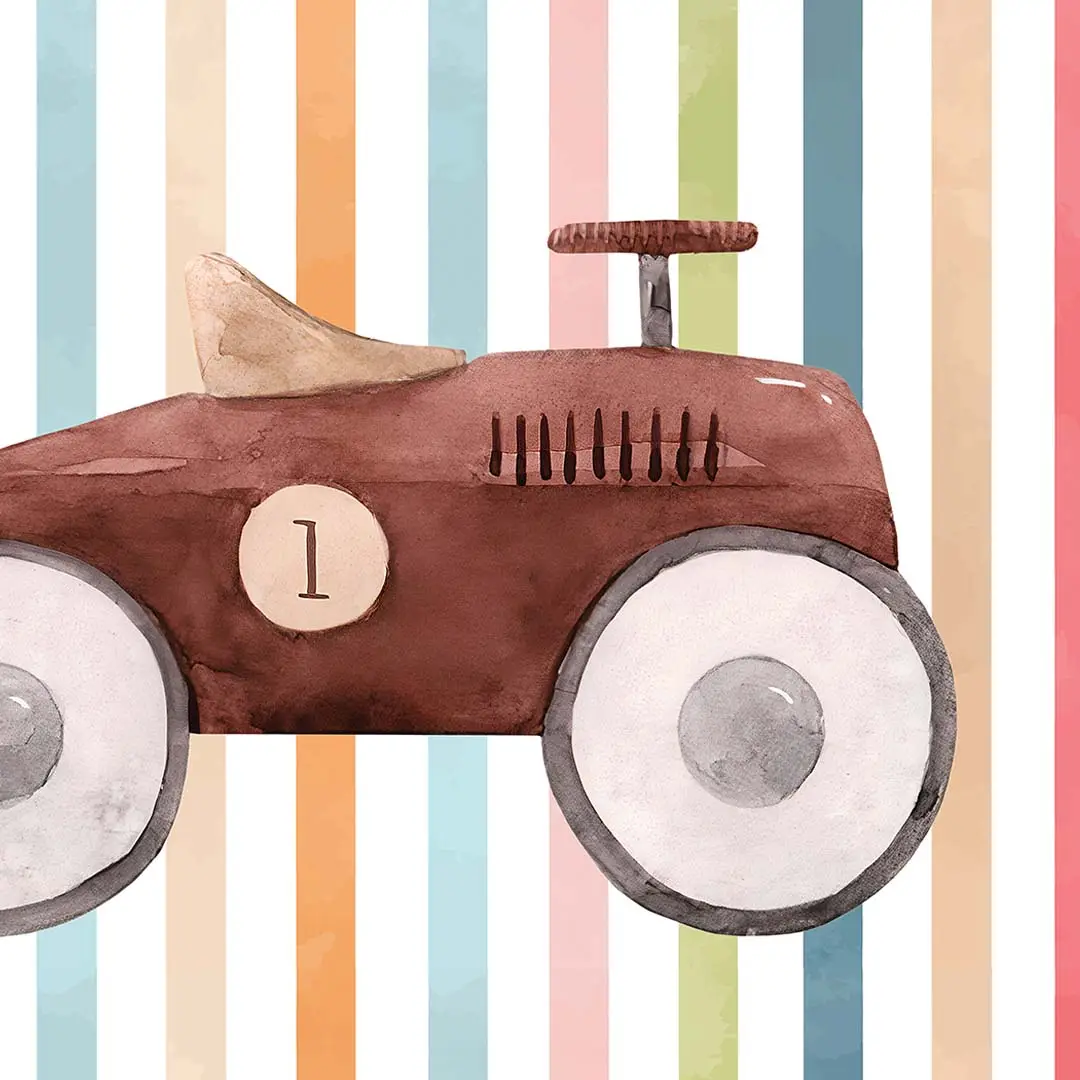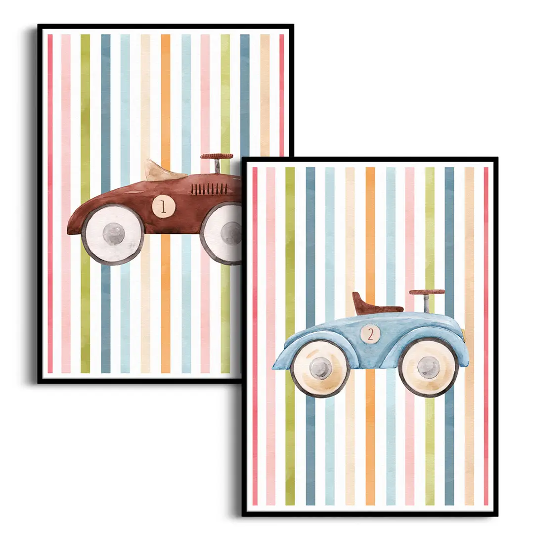 Wprowadź do pokoju swojego dziecka atmosferę łagodności i harmonii dzięki Zestawowi plakatów - Autka retro i kolorowe paski. Ten wyjątkowy dyptyk to coś więcej niż dekoracja – to zaproszenie do świata dziecięcych marzeń, gdzie pasja do klasycznej motoryzacji spotyka się z radosnym, nowoczesnym designem.