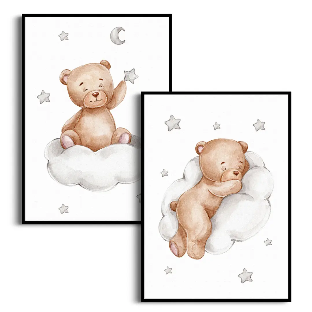 Wprowadź do pokoju swojego dziecka atmosferę łagodności i harmonii dzięki Zestawowi plakatów - Misie na chmurkach i gwiazdki. Ten wyjątkowy dyptyk to coś więcej niż dekoracja – to zaproszenie do świata bezpiecznych, dziecięcych snów, gdzie bajkowy spokój spotyka się z subtelnym, nowoczesnym designem.