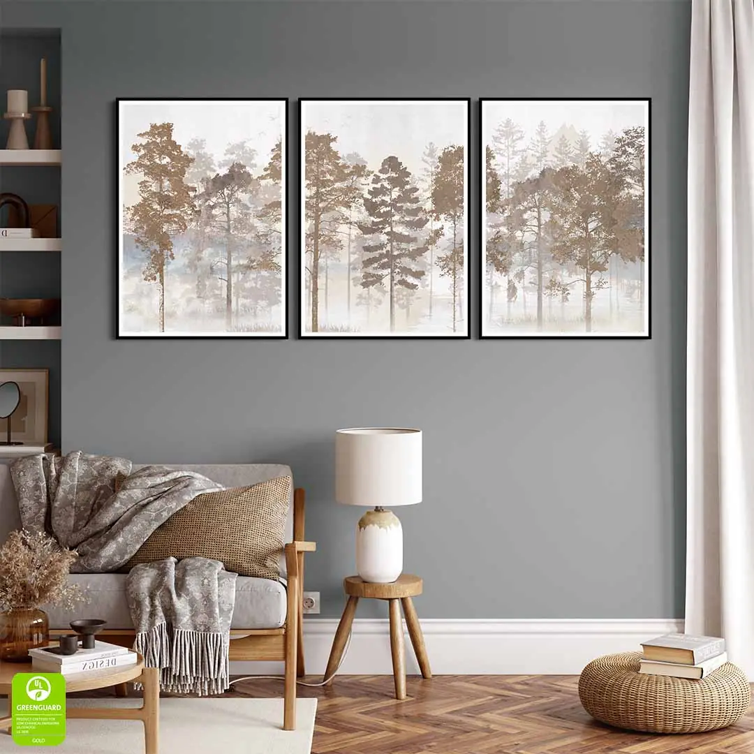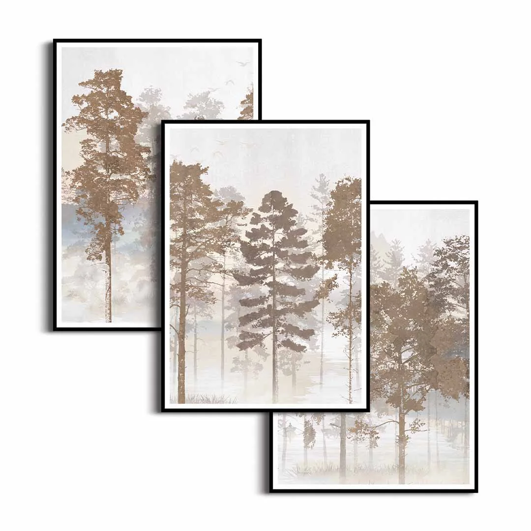 Zestaw plakatów - Klimatyczne plakaty z pejzażem lasu do sypialni lub salonu - Tryptyk