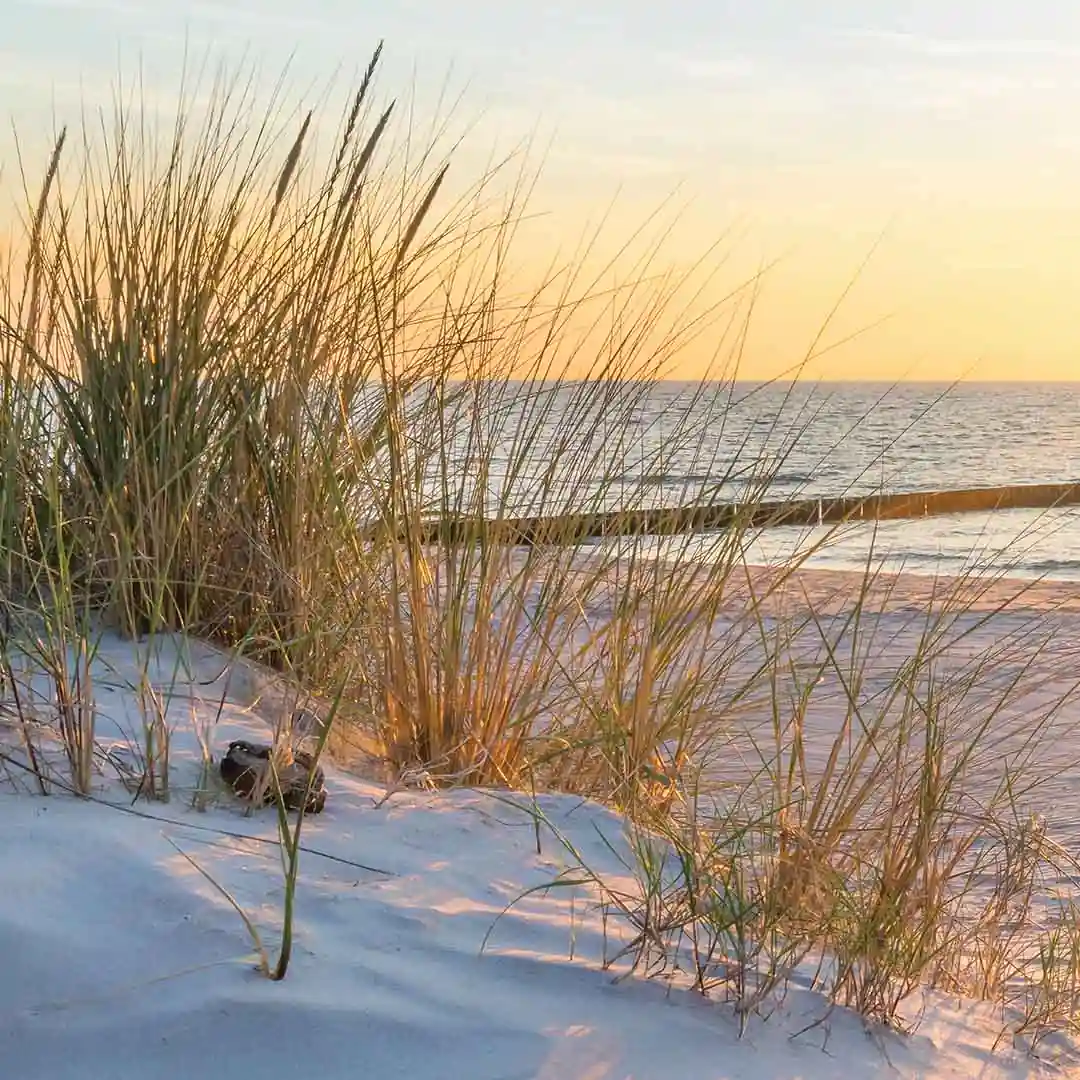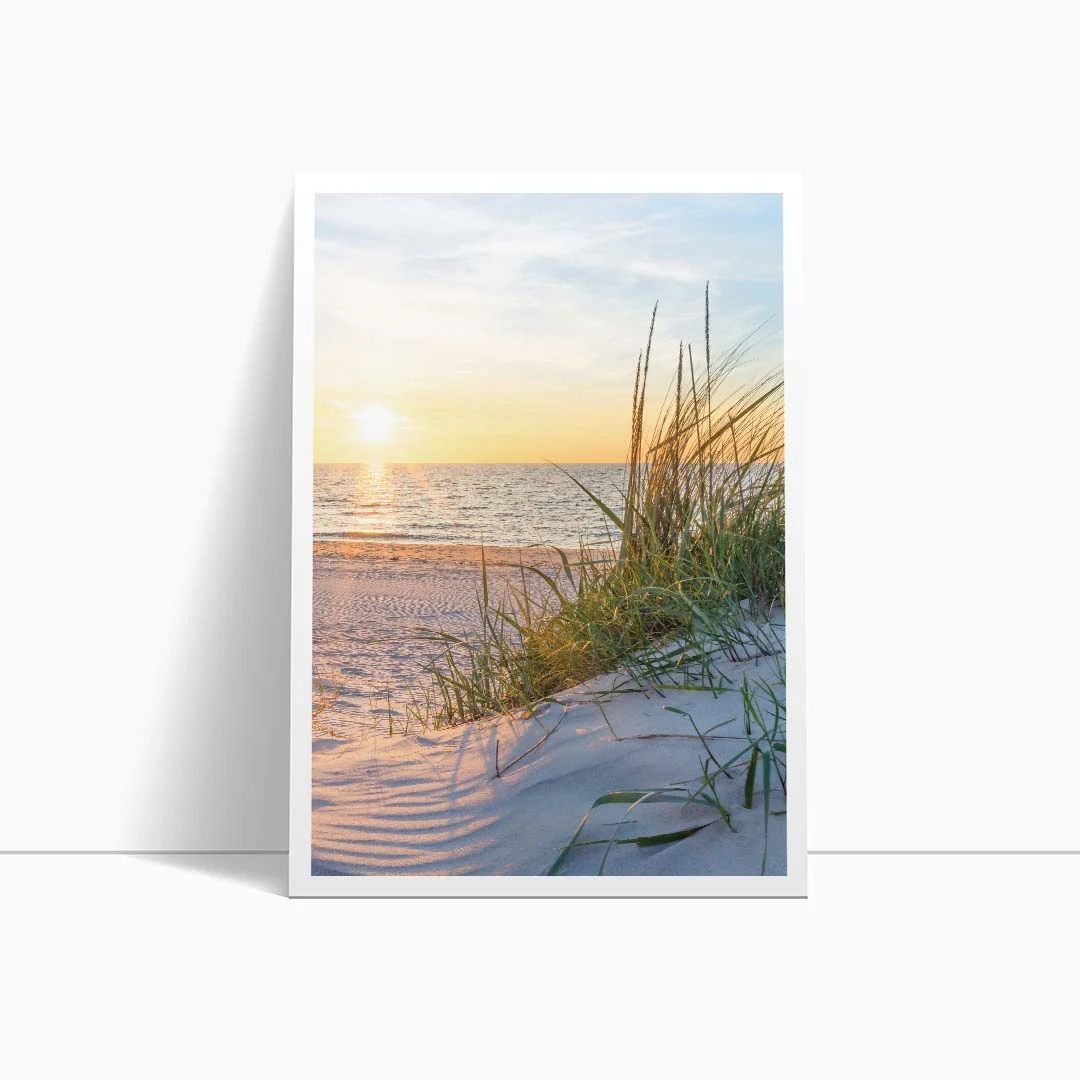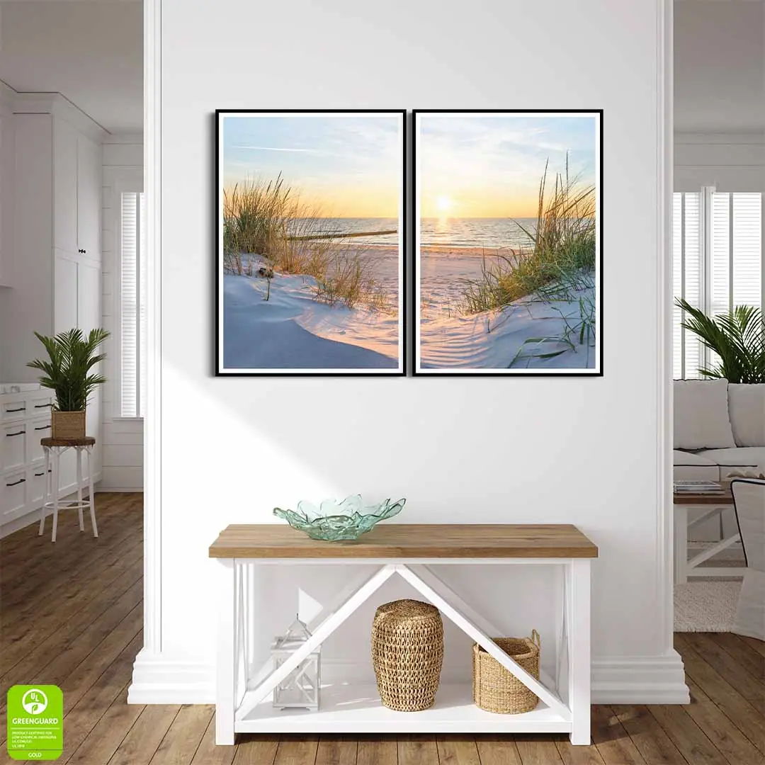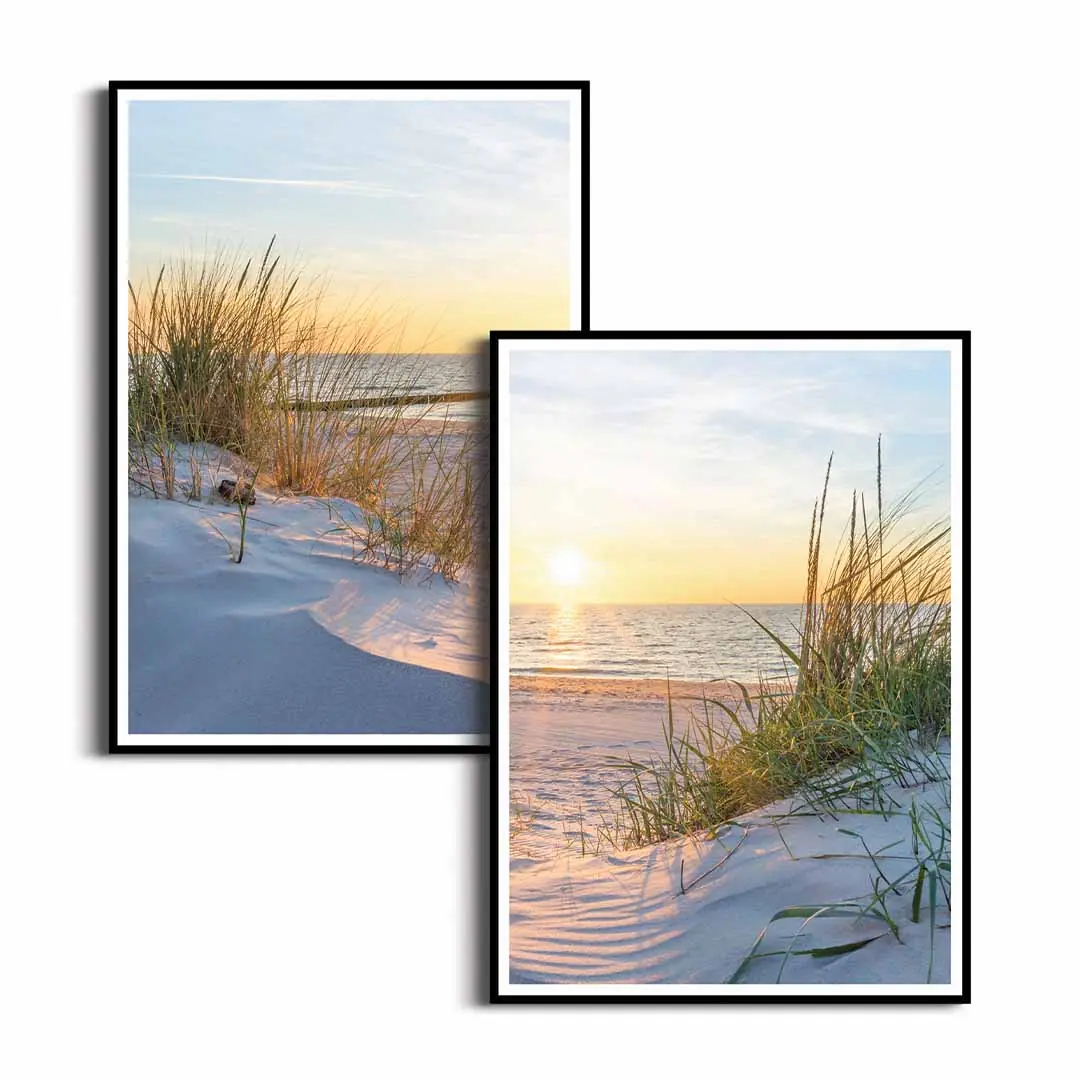 Zestaw plakatów - Zachód słońca nad morzem - pejzaż z wydmami i trawami w stylu skandynawskim i boho do salonu, sypialni lub łazienki