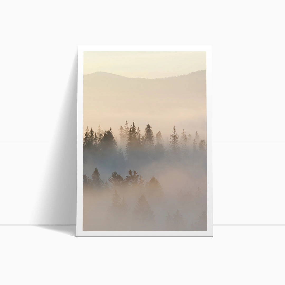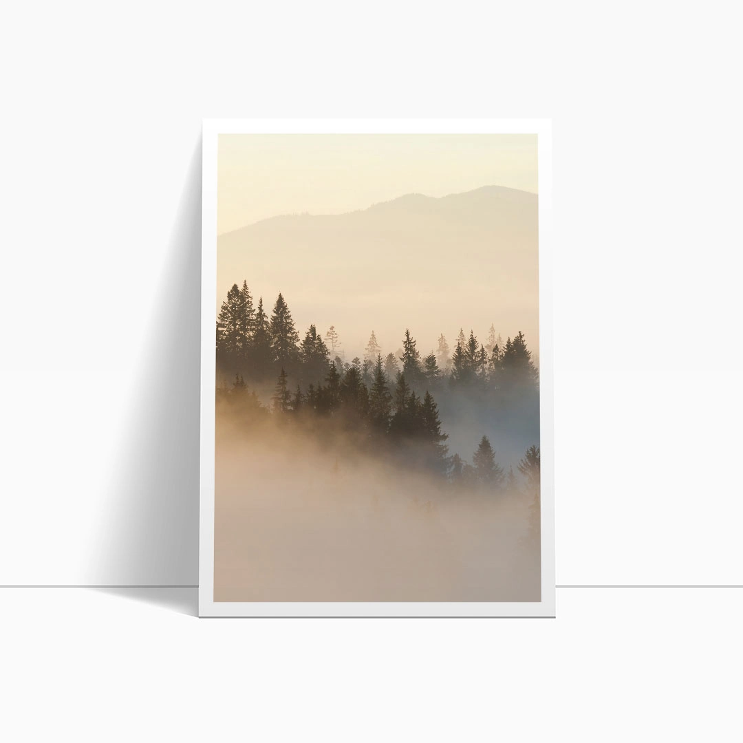 Zestaw plakatów - Zamglony Las i Góry – Widok, Pejzaż, Krajobraz Las we Mgle