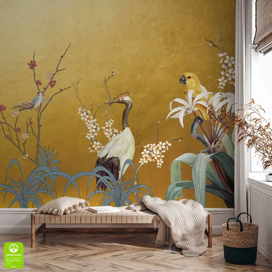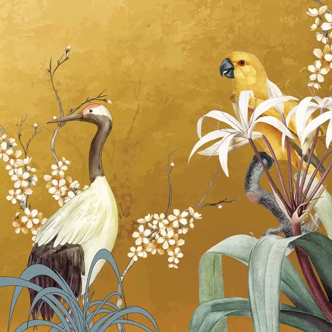 Żurawie japońskie – fototapeta na wymiar w ciepłych, orientalnych barwach