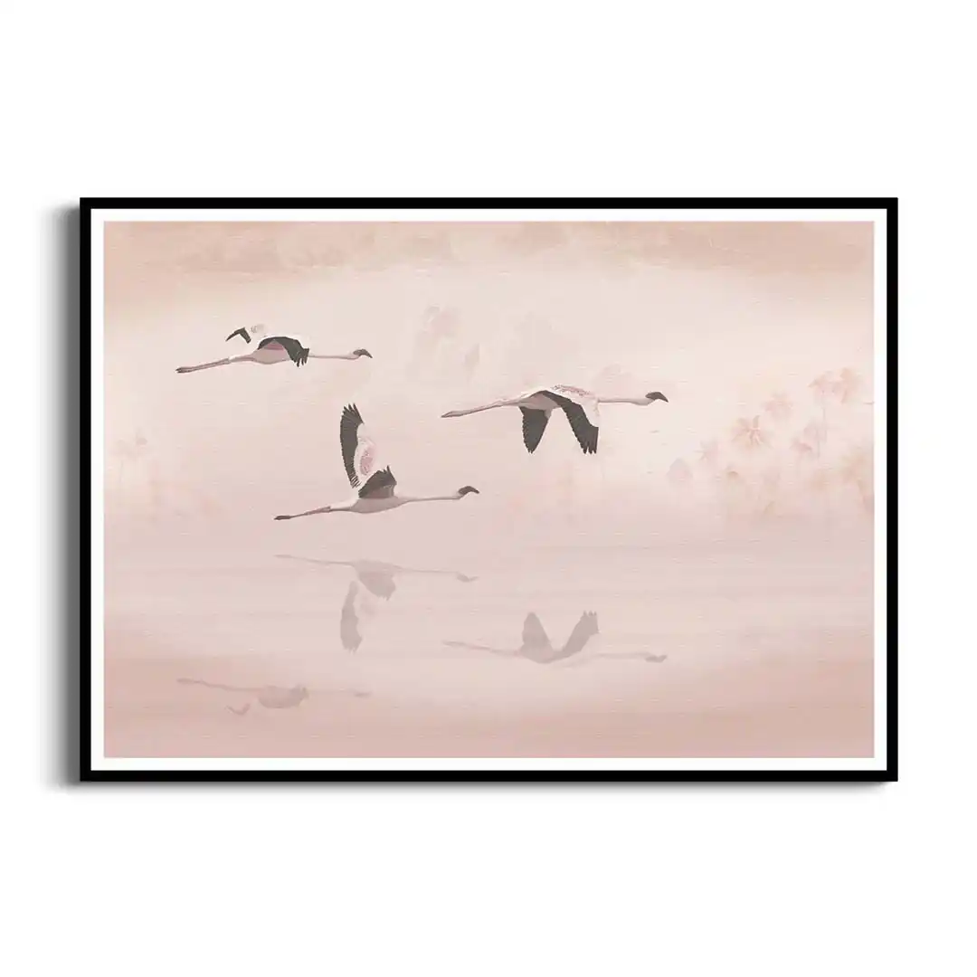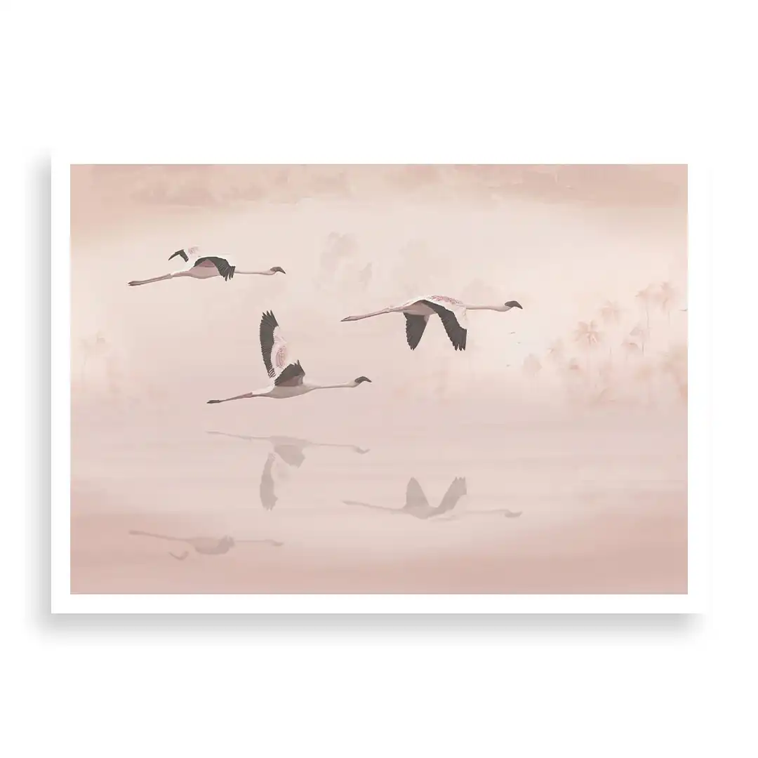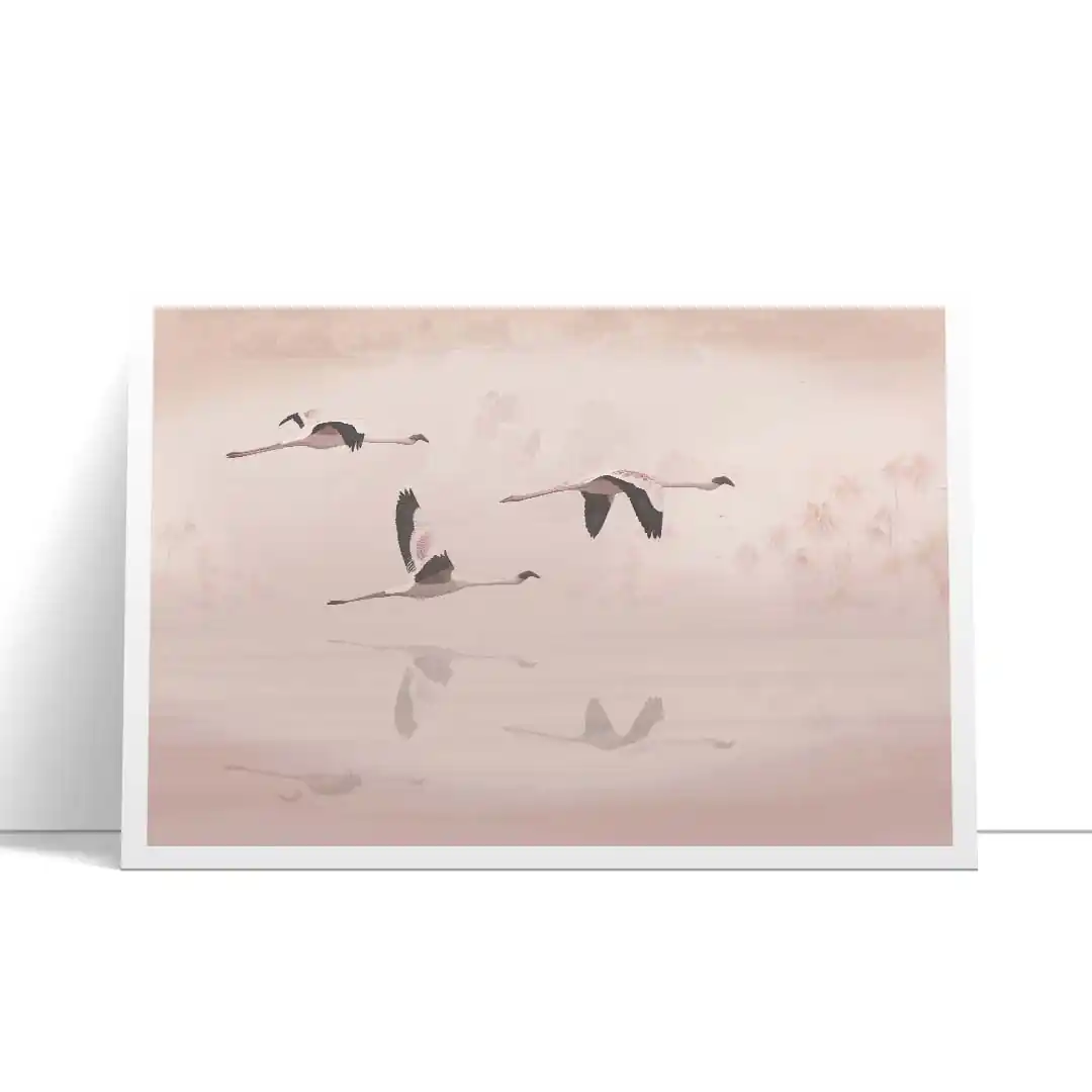 Plakat Lot flamingów – energia dzikiej przyrody na Twojej ścianie