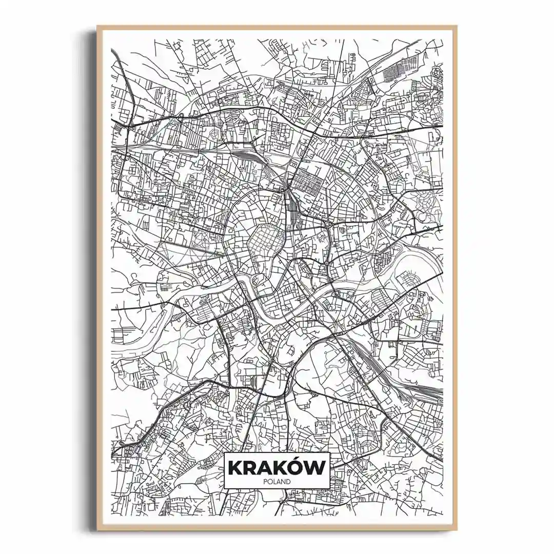 Plakat Mapa Krakowa, czyli nowoczesny plan miasta w Twoim wnętrzu