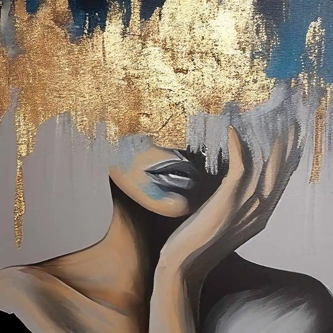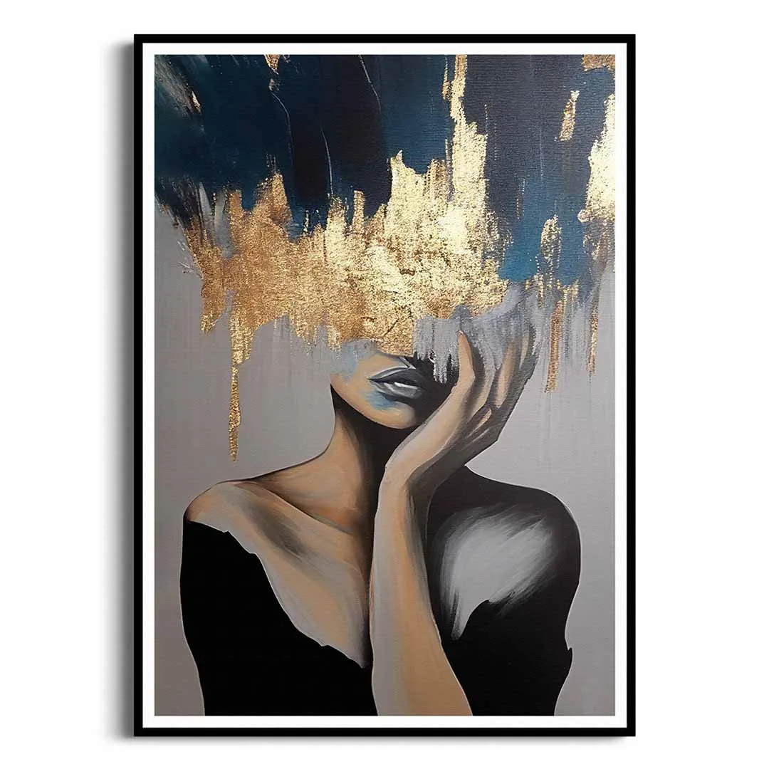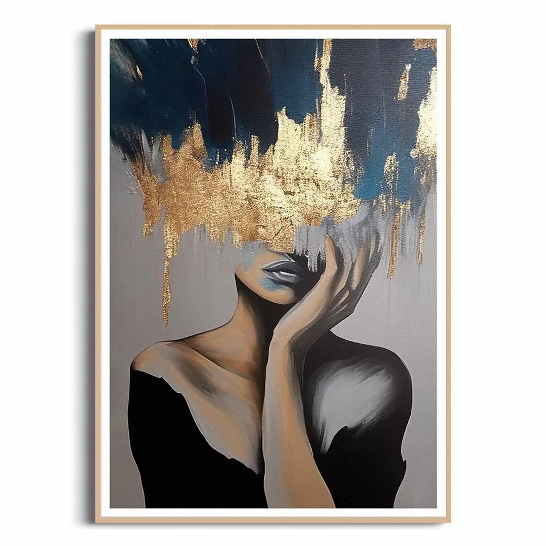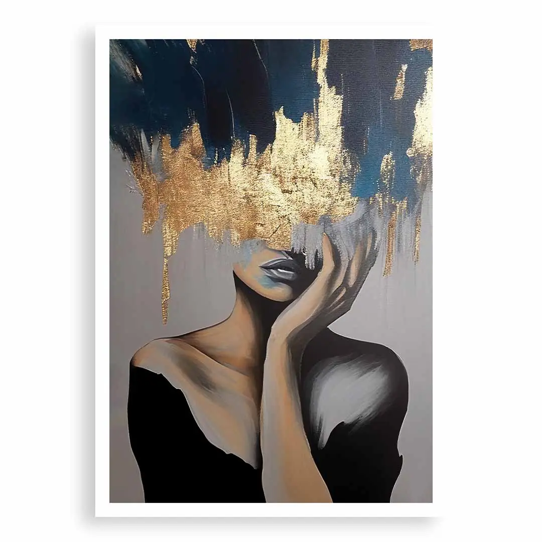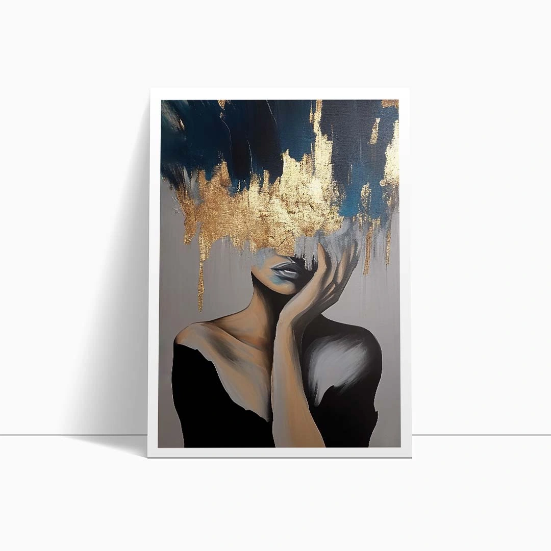 Plakat Portret kobiety za złotą zasłoną – luksusowa tajemnica na Twojej ścianie