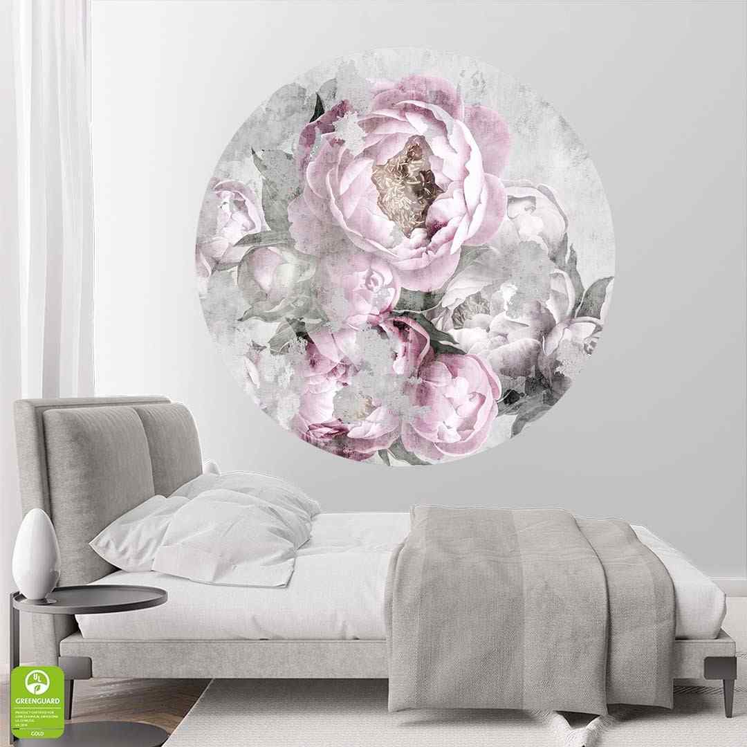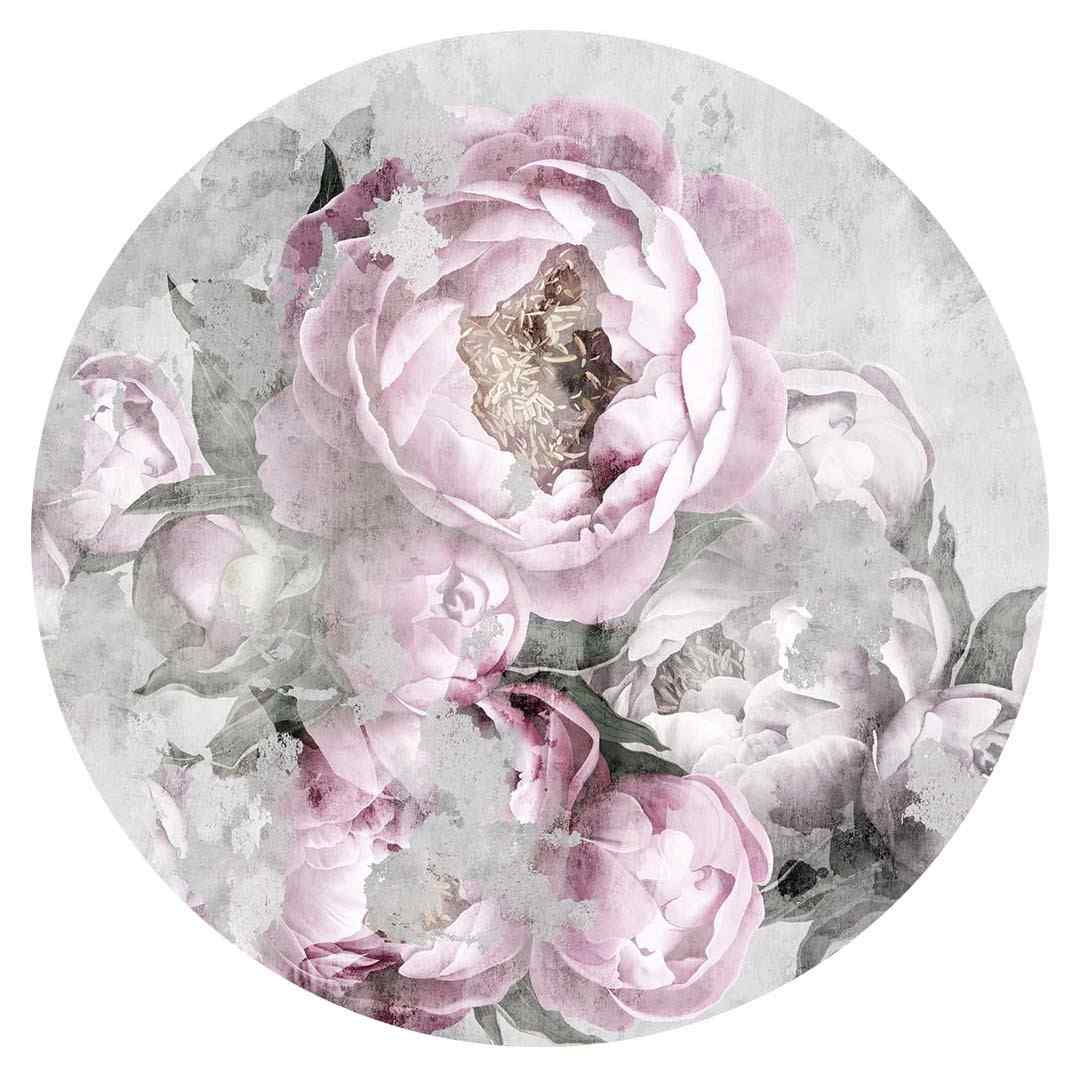 Okrągła tapeta na ścianę "Artystyczne różowe piwonie"