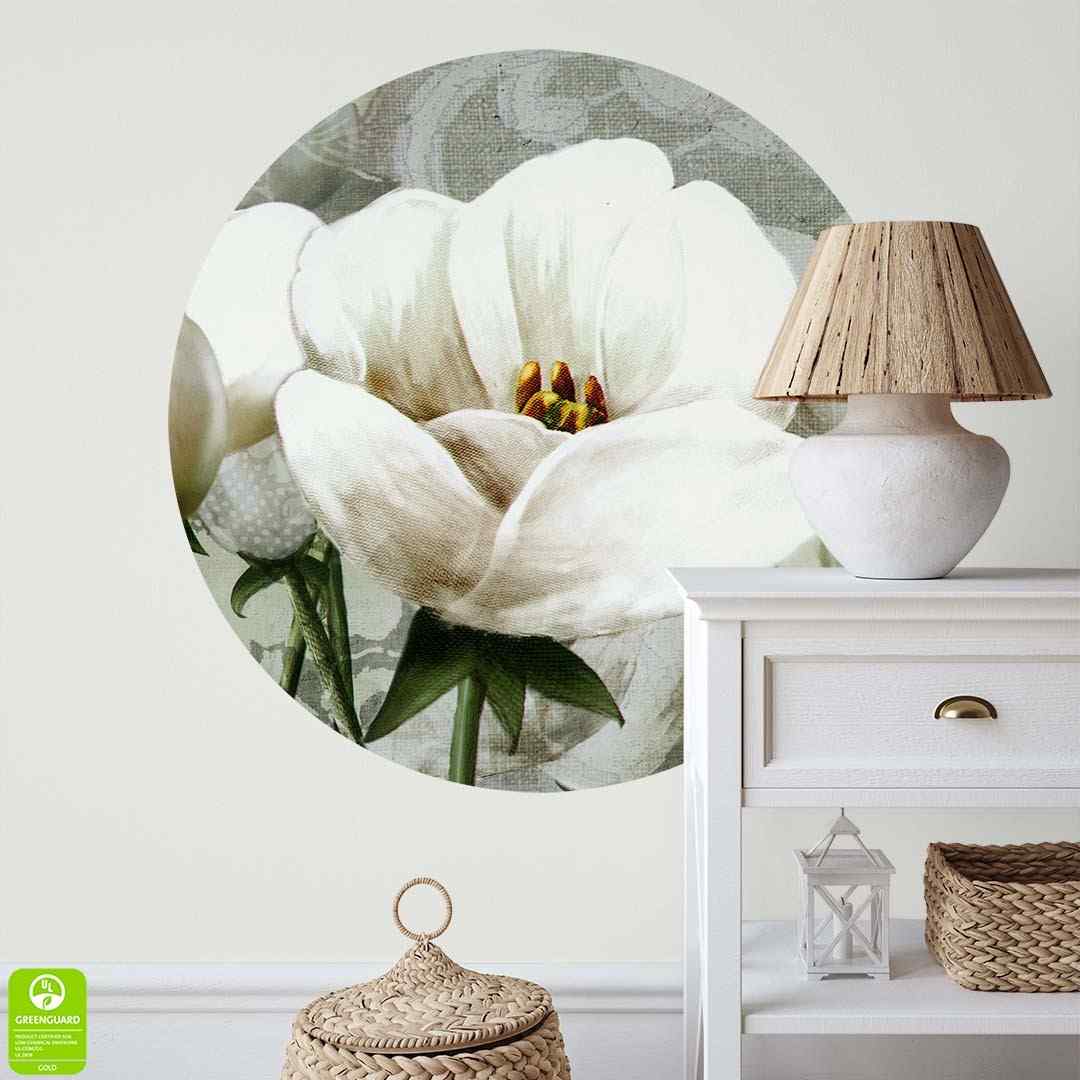 Fototapeta okrągła - Białe kwiaty na teksturowym tle